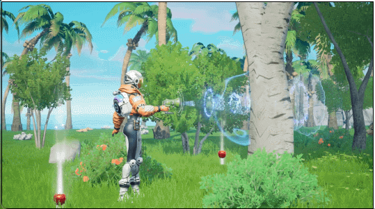 放到玩家自己需要操作的環節,星球又做了輕量化調整,比如不需要帶着各種工具替換來做砍伐、採集等操作,只需要一個聲波槍就可以解決所有的採集需求。