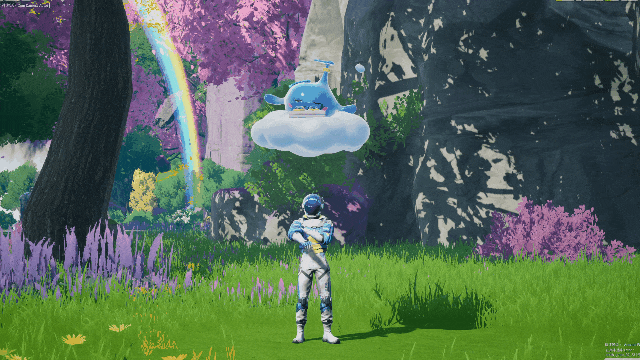 例如生長在雨季密林裏的藍月啾(估計是映射藍月亮?)啾如其名,能夠幫助玩家隨時隨地衝涼。在星球中,玩家擁有清潔度、飢餓度等生理指標,當指標變低就會陷入debuff,而藍月啾能夠隨時隨地用它的花灑頭和雲毛巾,幫助角色提升清潔度,從而降低來回跑家沖涼的精力消耗。