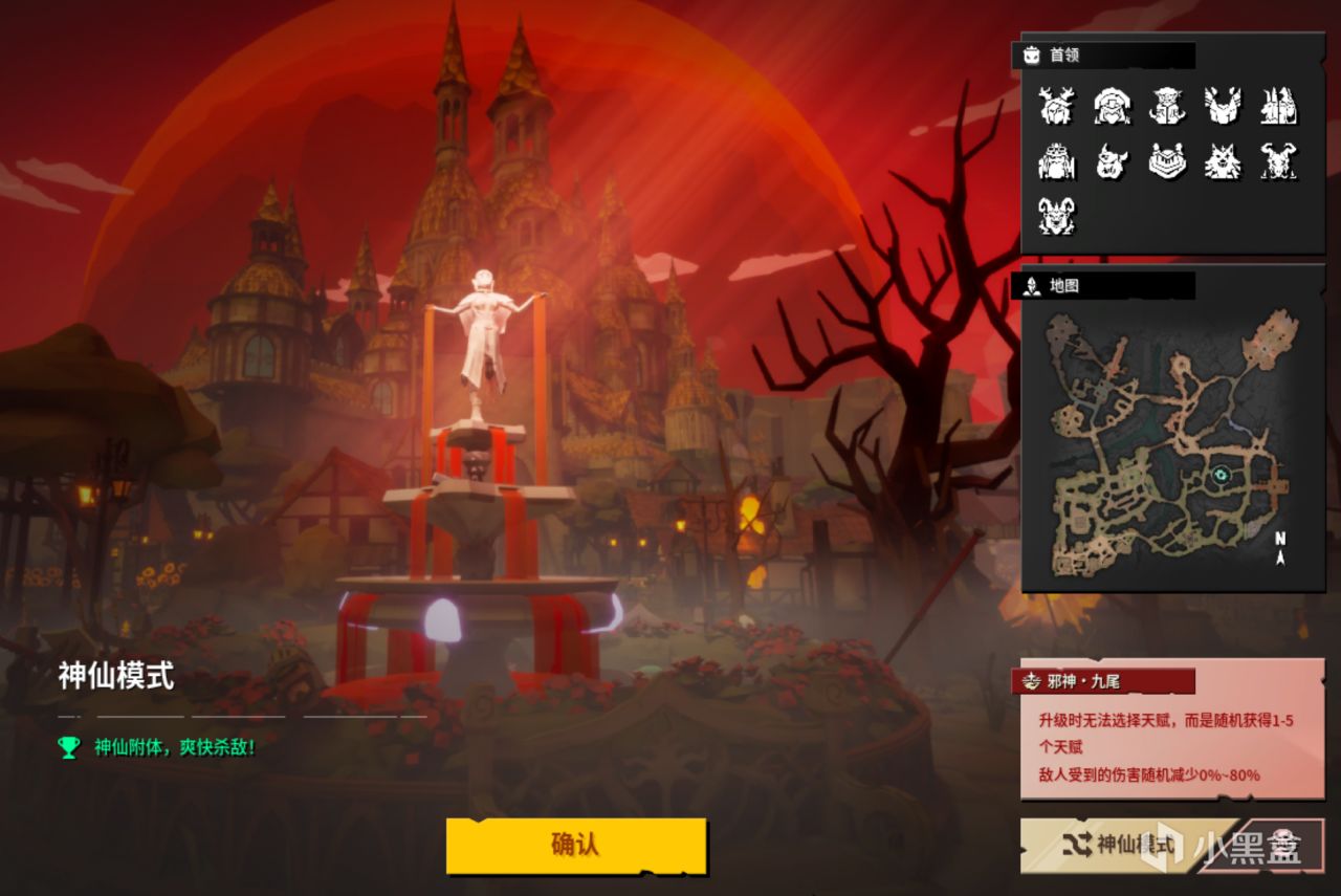 九尾關卡,原本是無法選擇天賦但隨機獲得1-3個天賦,邪神模式下改爲無法選擇天賦但隨機獲得1-5個天賦,但敵人隨機減傷0%~80%。