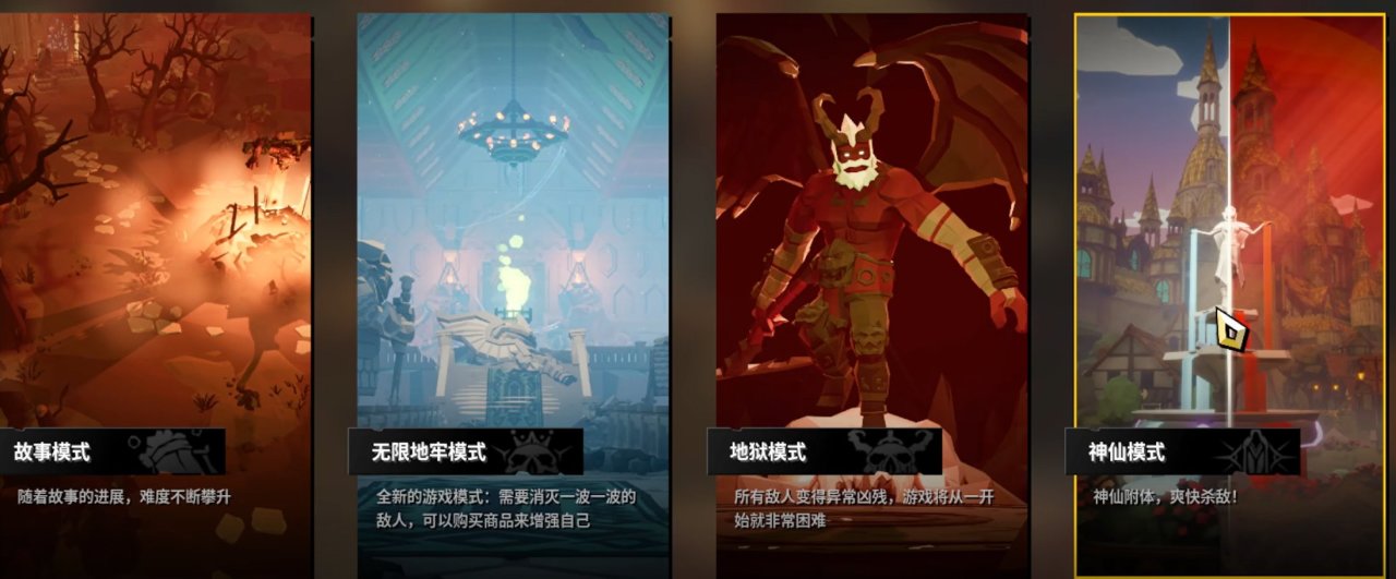 打单挑撒旦之前,我们还要击败三个boss,他们同样是随机的。击败他们后我们还能获取随机大招,像豪火球之术、影流之主,直接秒杀大片敌人。新加入的无限地牢模式有着更多的玩法和随机性。我们能锻造,下注,一切没有上限,只要你的电脑能够坚持住,数值能够无限膨胀。