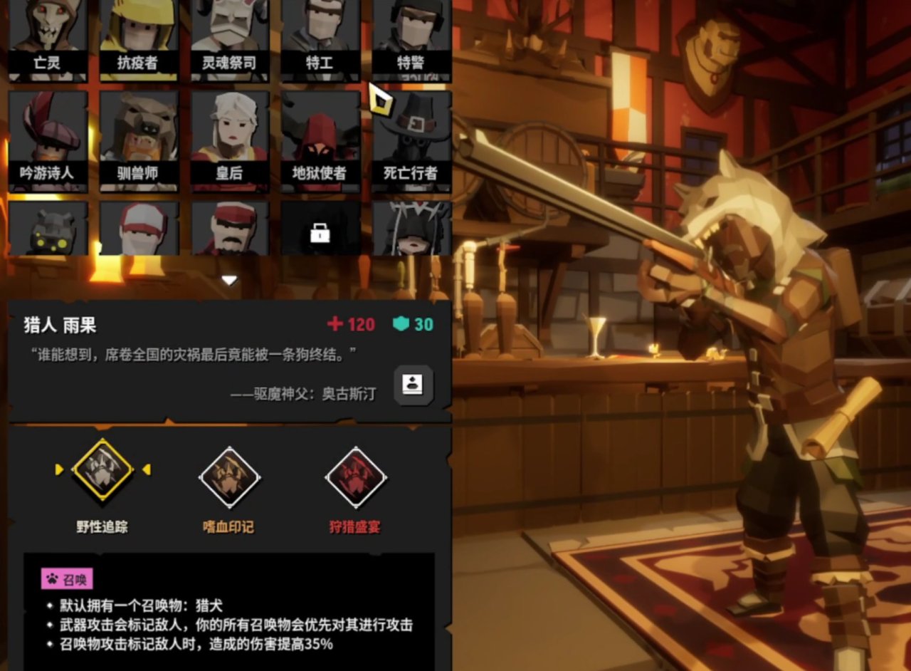 我们有一面墙的角色可以选择,他们有着不同被动和技能,人物和人物之间的差距可能做不到像《土豆兄弟》那样每一个角色都有很大的差异,而且基本上每一个都有自己的玩法,在《天启派对》中即使你选择了角色,他依旧有很多不同的构造可以组建,比如你打远程,同样可以配上召唤流,选炮台这种同样能吃你弹道加成的召唤物。总得来说,不管是什么角色搭配上合适的武器和天赋,都可以做到割草爽感。