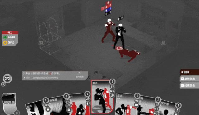 每一張牌都是一個獨立的招式,玩家可以通過組建不同的卡牌來打造出一套自定義的戰鬥流派,可以是John Wick那種人狠話不多的速殺流,也可以是我要打十個的葉師傅流派。當然,除了常規的動作牌,玩家還可以充分利用環境要素,將對手打出戰鬥區域來快速結束戰鬥,玩出成龍的風格。