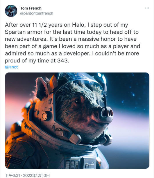 《光環:無限》多人創意總監Tom French宣佈了離開的消息。French曾有超過11年的《光環》開發經驗,當地時間週五,他發推表示將開啓新的征程: