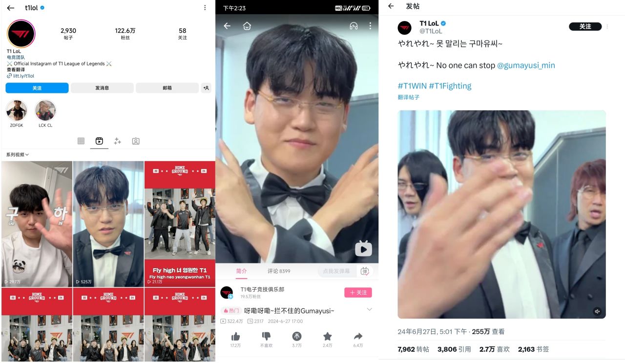 最近T1 AD選手Gumayusi聯動兩位韓國藝人翻拍魔性舞蹈“晚安大小姐”,全網播放量突破1000w,嗶哩嗶哩全站排行榜最高40名,請看VCR