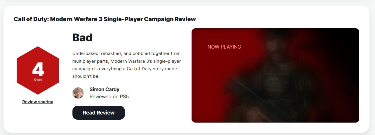 有遊戲,電影,工具等分類,滿分爲十分,總部以前有小數點,現在都是整數了。有許多分區,各自分區的評分也會不同(比如死亡擱淺IGN總部給了6.8分,IGN日本給了9分),現在IGN中國由騰訊運營。