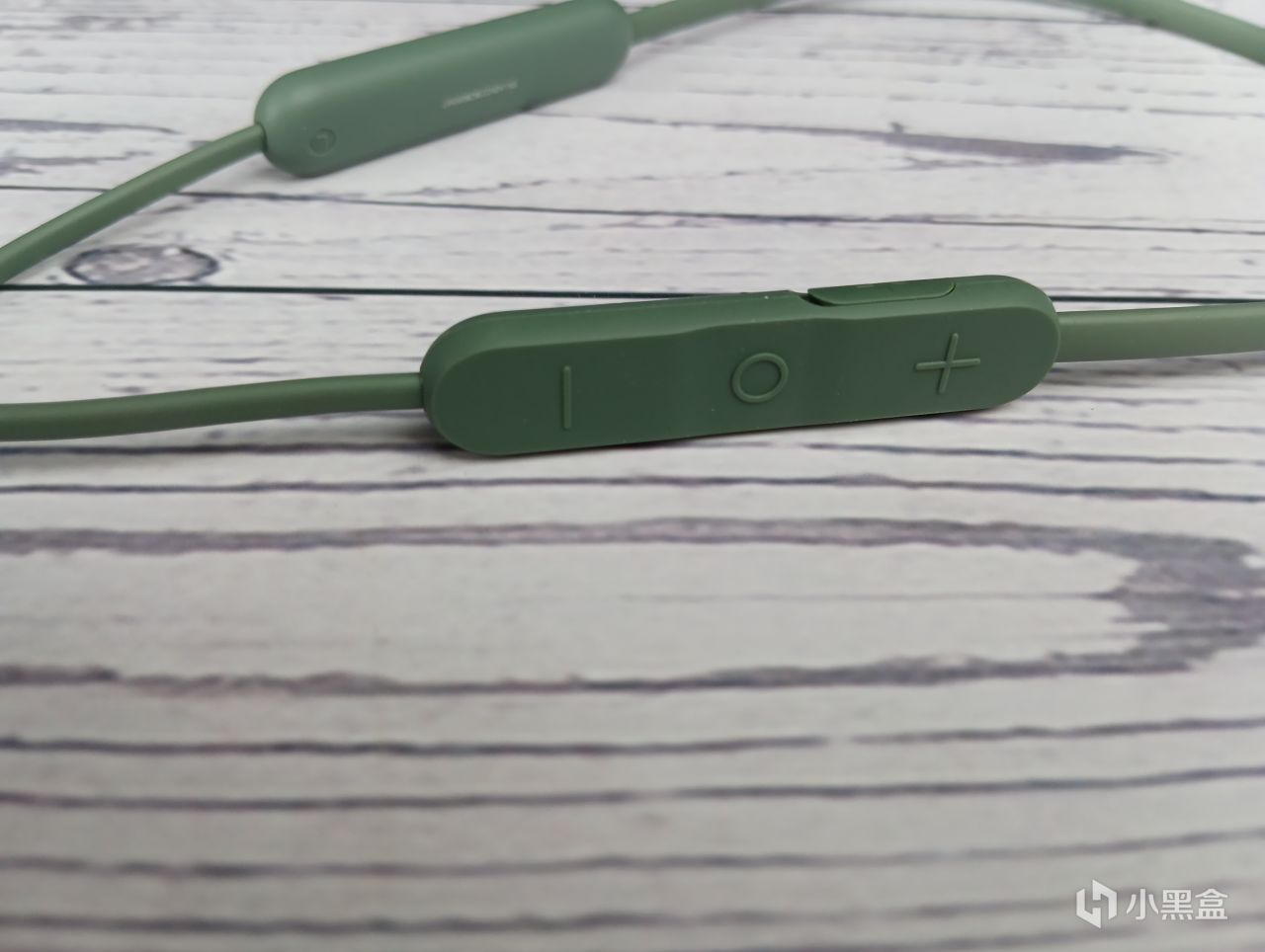一共三個鍵位於右側線控正面,與別的耳機不同,FreeLace活力版的就像筆隨意畫了幾筆上去,主打的是一個簡潔,不知道的以爲是裝飾。比按別的耳機要多用些力,對七七這種長指甲患者不太友好,還是更習慣明顯凸出於表面的。