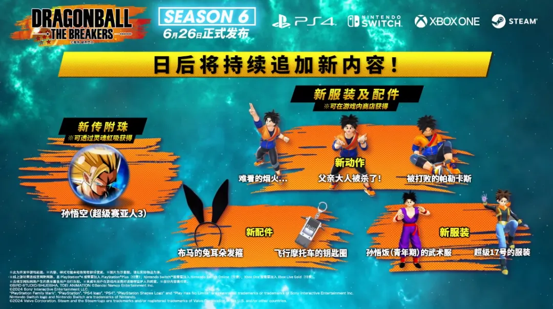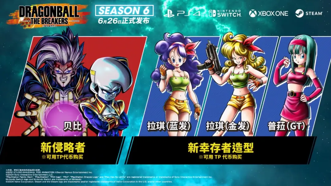 1V7非對稱對抗躲貓貓遊戲《七龍珠 破界鬥士》第六季已啓動,新增侵略者貝比,以及倖存者皮膚等內容。