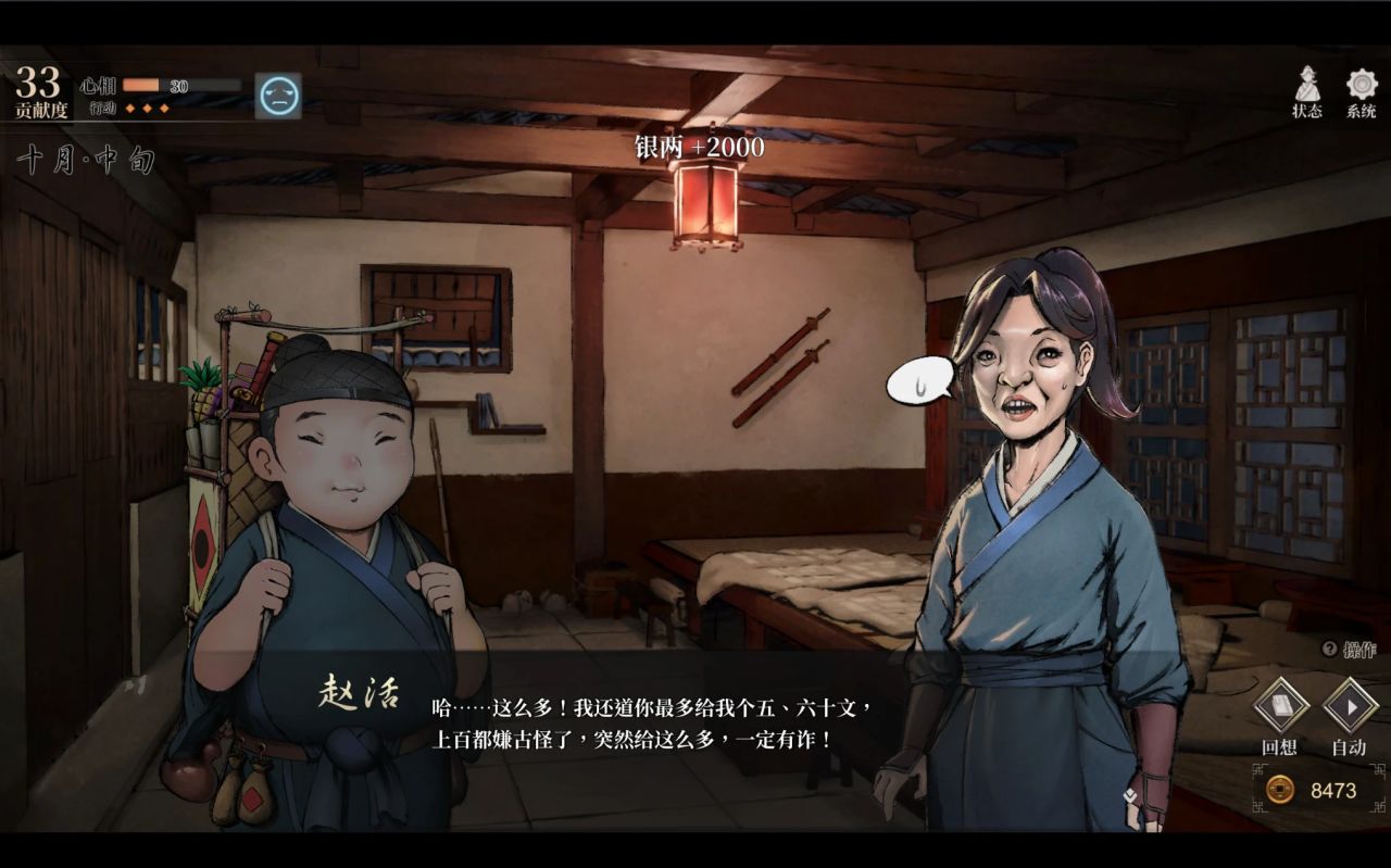 举个例子,为了救下叶云裳并且少损失点钱,我需要在中医老头那里SL出80点以上,然后选择欺骗山贼并没有被随机锤死。这在游戏发售之初,不能在事件中存档的情况来说,我不知道这些初版玩家,要忍着恶心,SL多少次?