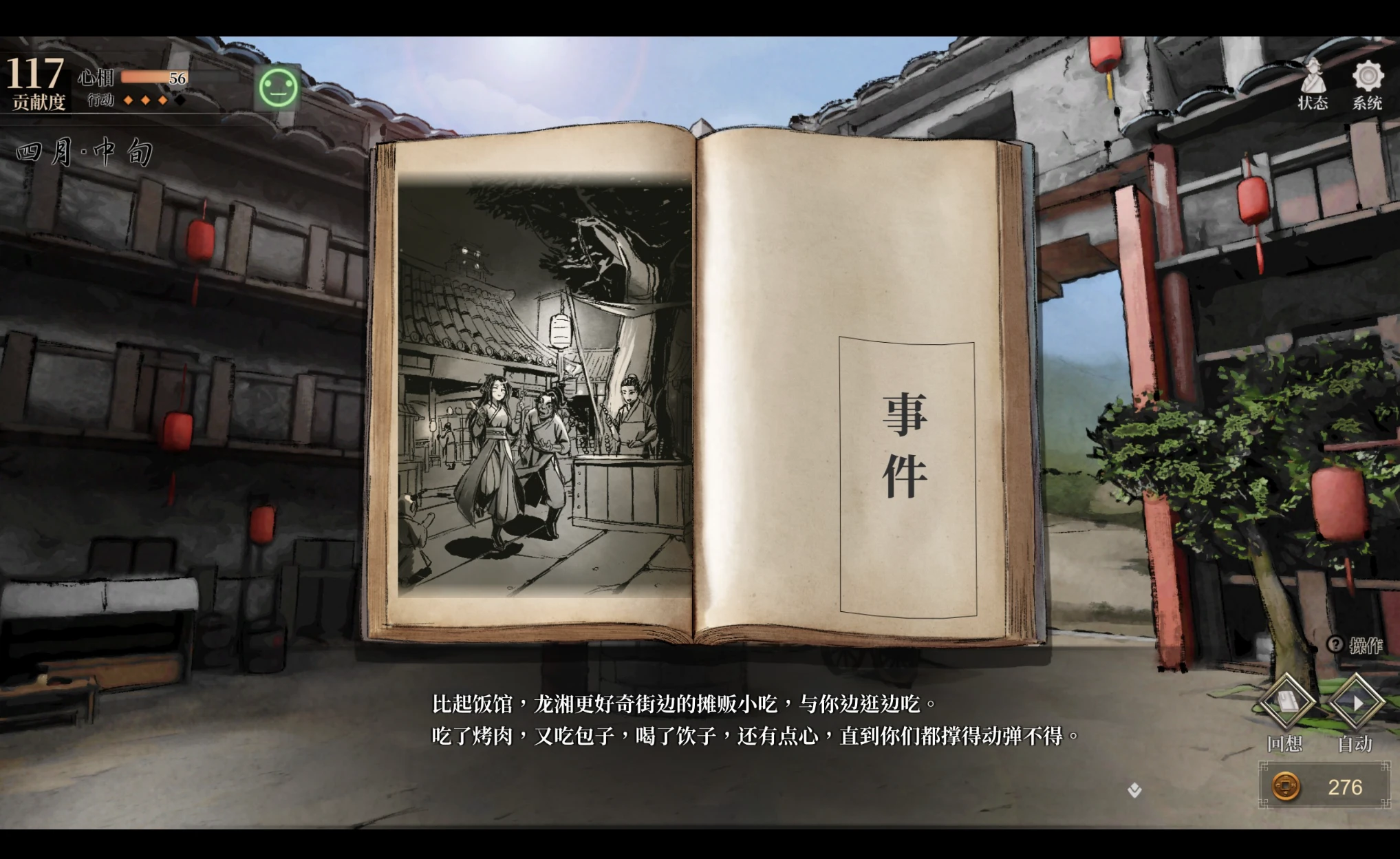 对于《活侠传》四师兄的行动点消耗更改,此次可以在四师兄那里买完吃的、秘籍、折纸后,额外选择休息或者吃东西。大大节省了每月本就不多的行动点消耗。这是个好改动,但还不够好。