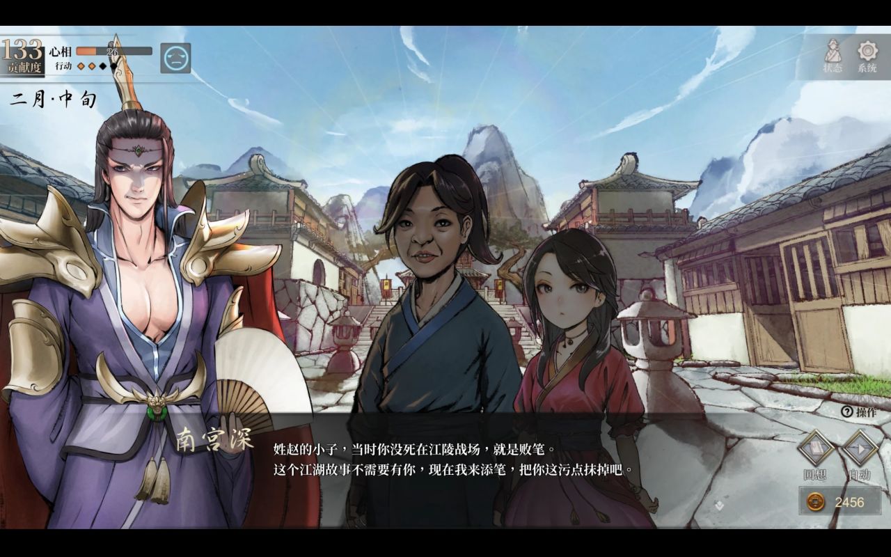 这一部分的存在冲淡了江湖大事上的紧迫性和严肃性。我不是说感情故事不能有,只是为了让玩家获得更多的关于“感情故事”的信息,将这些内容编排在两军队伍生死攸关,变数极多的战场之上,这是否就……