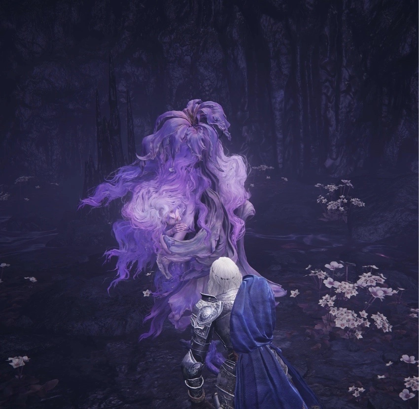 很多人說顛火森林和尖刺山沒啥好東西,我感覺還行吧。森林有幽影樹碎片,尖刺山有古龍巖失色鍛造石和畫家。森林讓我第一次在魂遊裏面體會生化危機2第一次遇到舔食者的感覺,首先牛馬直接嚇得不敢出來,官方諫言也讓我蹲草裏別發出聲音,沒血條的異形老翁配上這恐怖的背景音樂(帶上耳機),加上無意間碰到草裏的黃色花發出聲響後瞬間恐怖氣息拉滿
