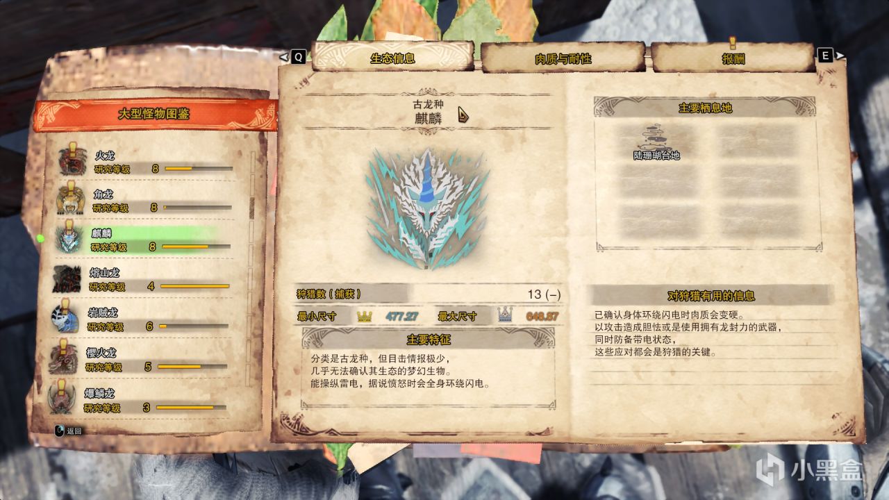 想要區分什麼是古龍種可以去查看一下自己的獵人筆記,ESC打開選項選擇中間的信息列第一個就是