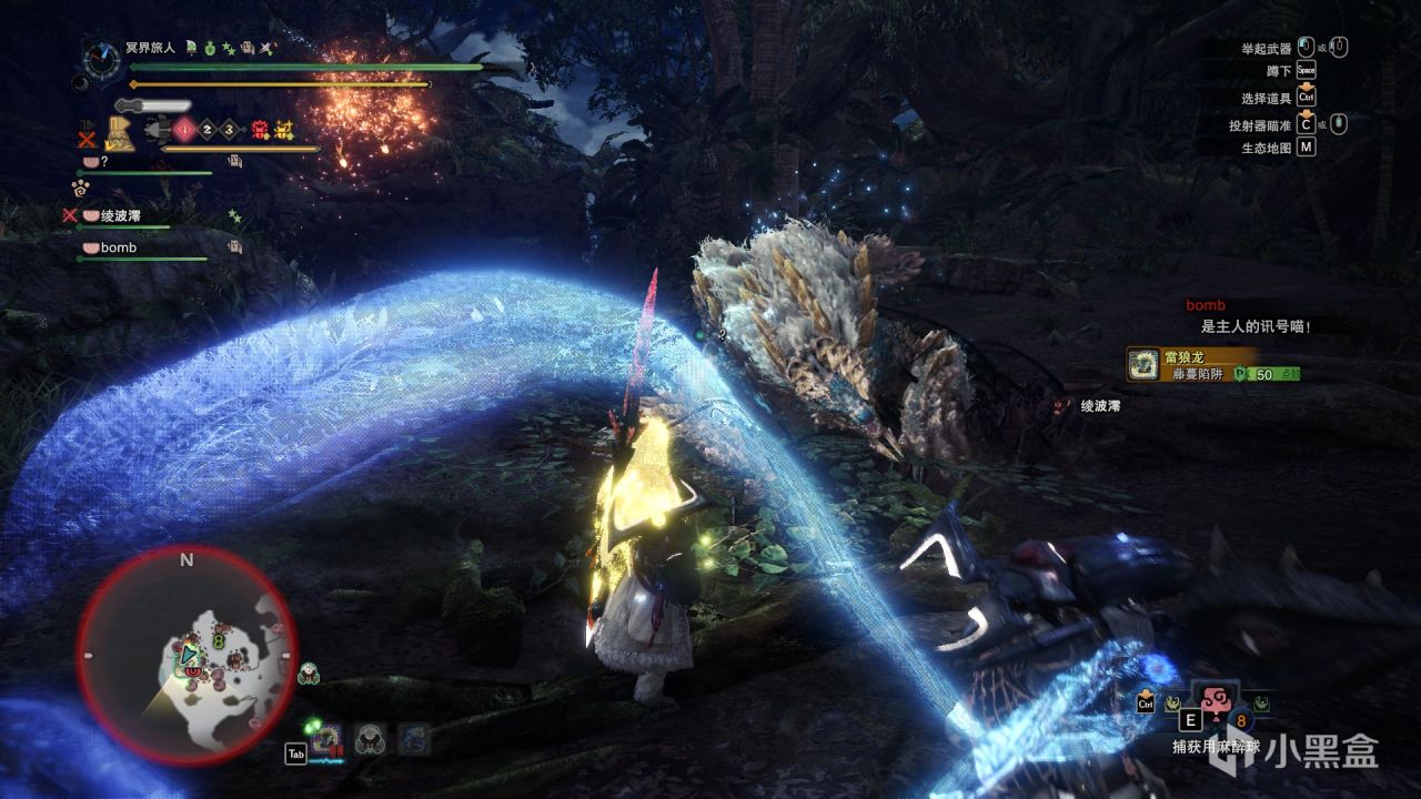 其中藤曼和落穴需要通過全彈發射讓怪物撞到對應位置(古代樹森林最高處的瀑布也算在這裏面)或者讓怪物提前擊打後引到對應位置觸發。落石需要怪物站在落石底下時通過投擲物觸發,一般常見套路是穿着隱身衣發射投擲物把怪物引導到落石底下再觸發落石,在特競裏這也是不錯的一種輸出手法。