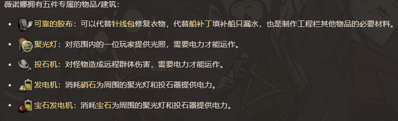 * 薇諾娜可以免疫來自黑暗的第一次攻擊,不會因此損失生命或理智,每次回到光照下都可以刷新這個效果。