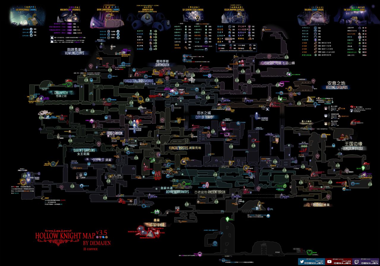 (如果不想看攻略的玩家,你一定需要一个全地图,可以在小黑盒的空洞骑士数据库里获得,里面还有一堆详细的东西)