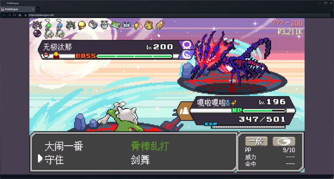 幸好是學了守住和劍舞的。可以利用無極汰那的無極光束進行強化。第一次強化到加6,無極汰那用了污泥炸彈還給我中毒了,剛進二階段嘎啦嘎啦就被毒死了。