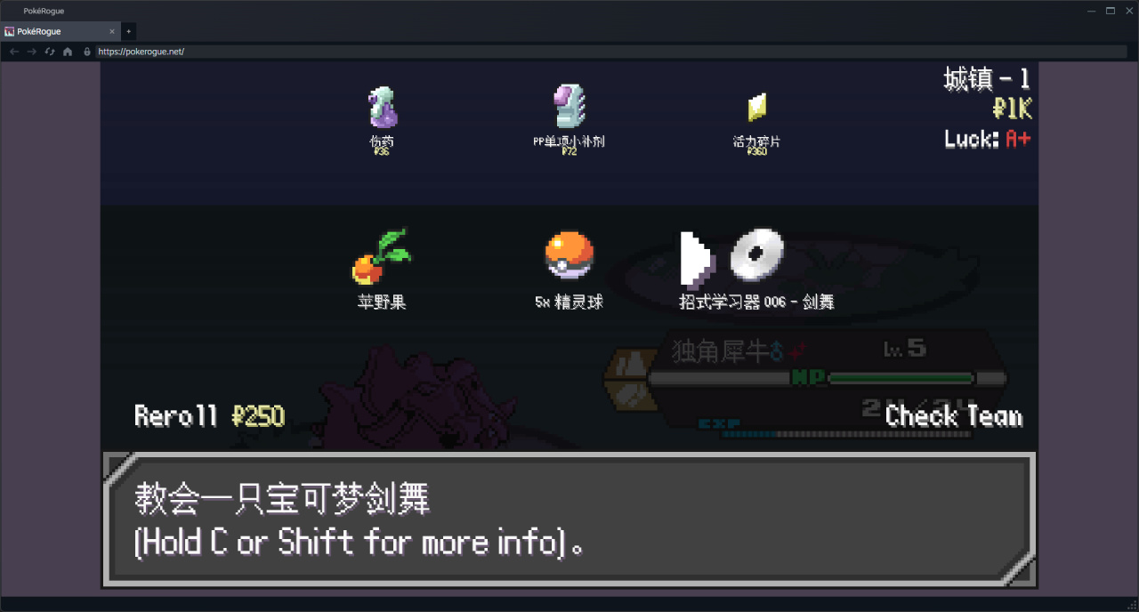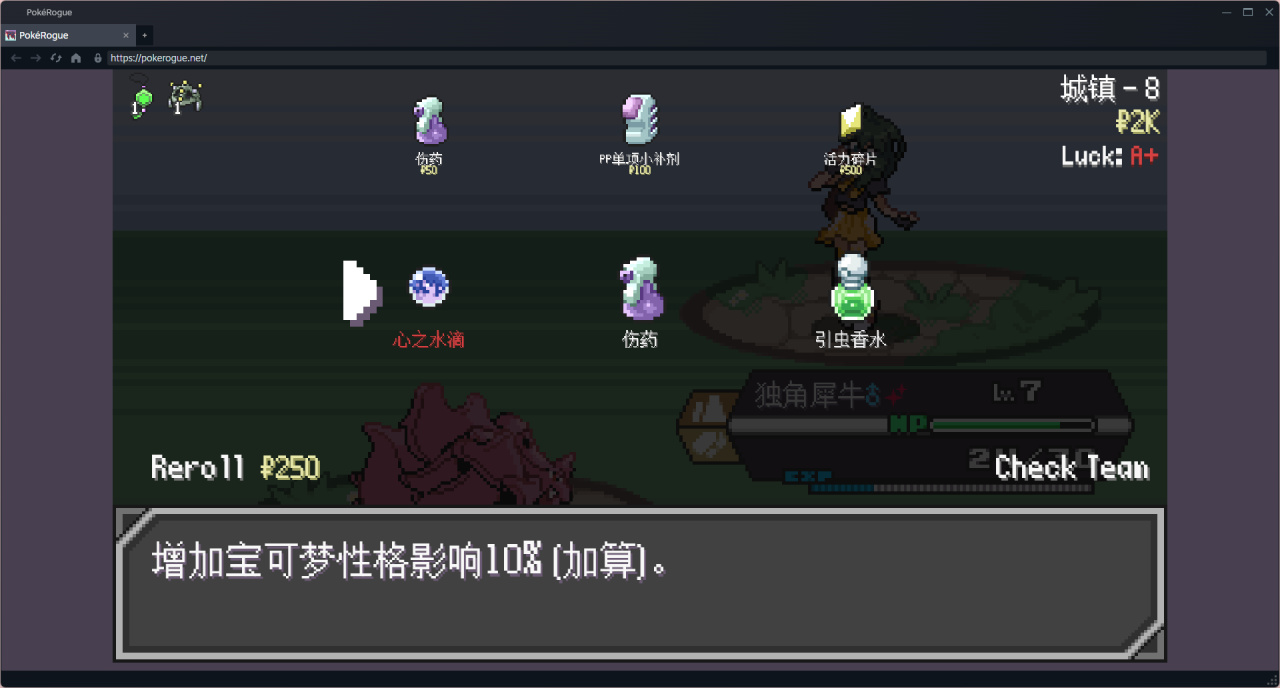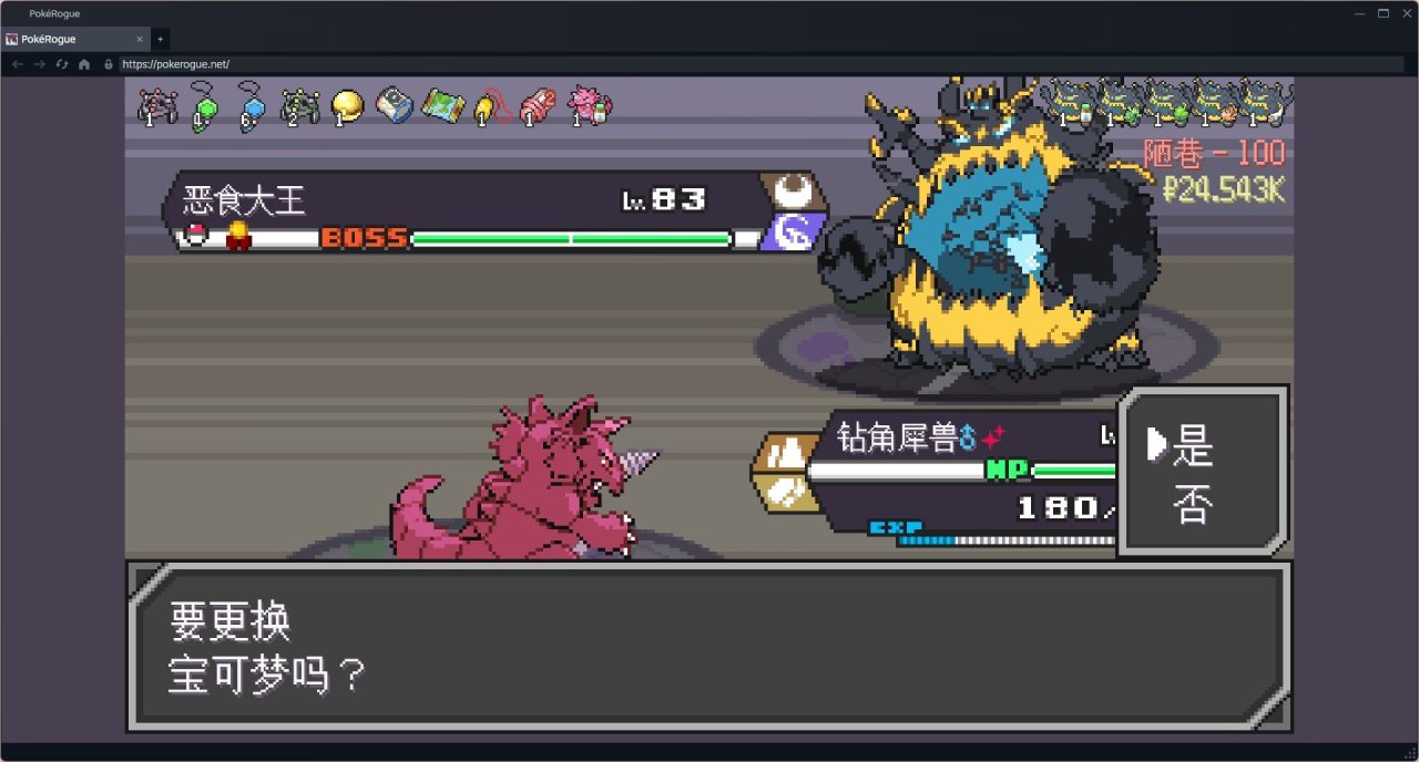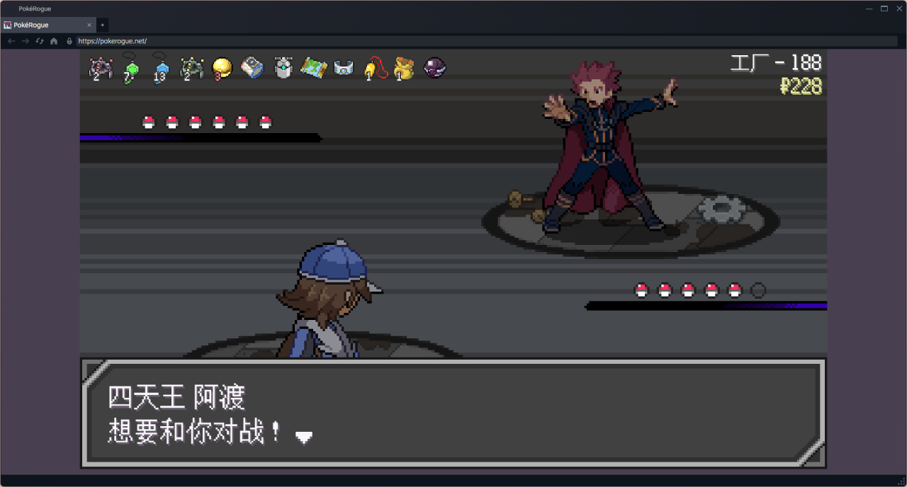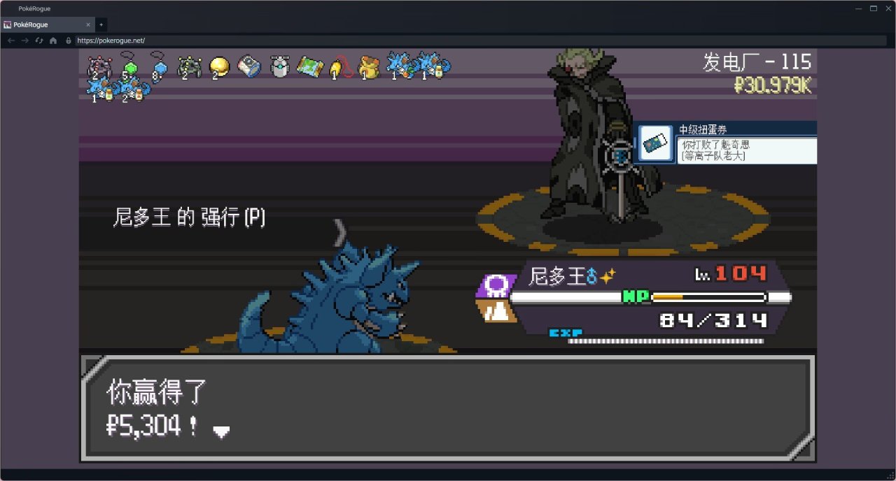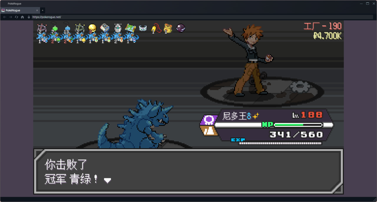 邪惡隊伍剛加,所以對他的層數不是很敏感,忘記回血了。激戰完三個訓練家,寶可夢全是半血就開打boss了,最後殘血險勝。已經開始難受了
