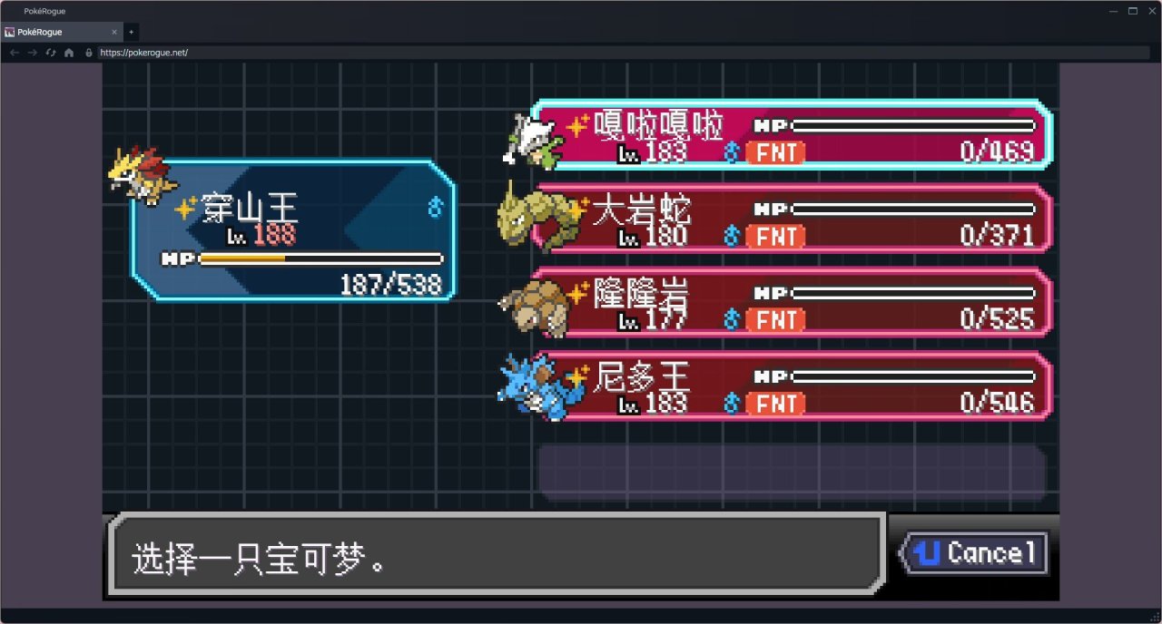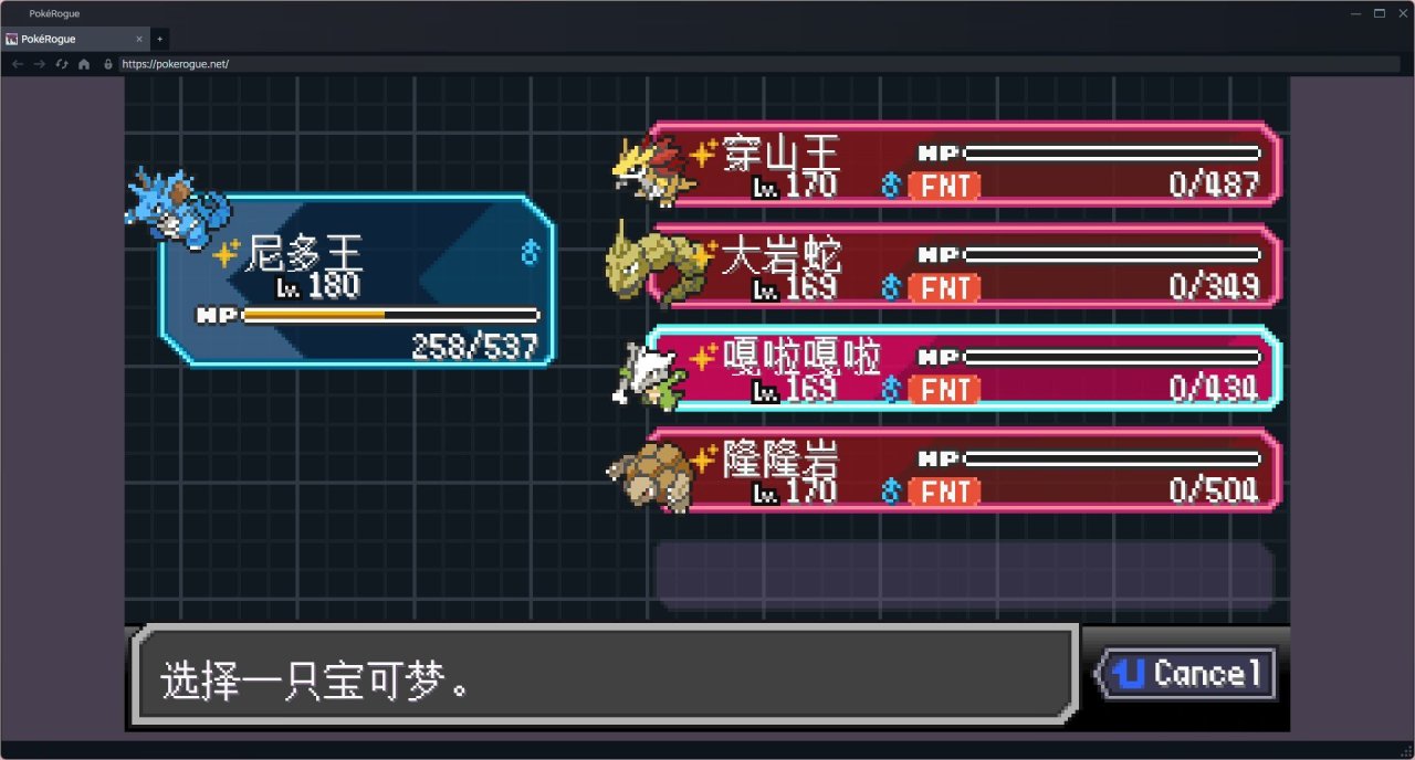 最後只剩了只嘎啦嘎啦,錢也沒了,只夠復活一隻寶可夢了。其實感覺已經結束了。不過還是選擇復活了尼多王最後一搏!