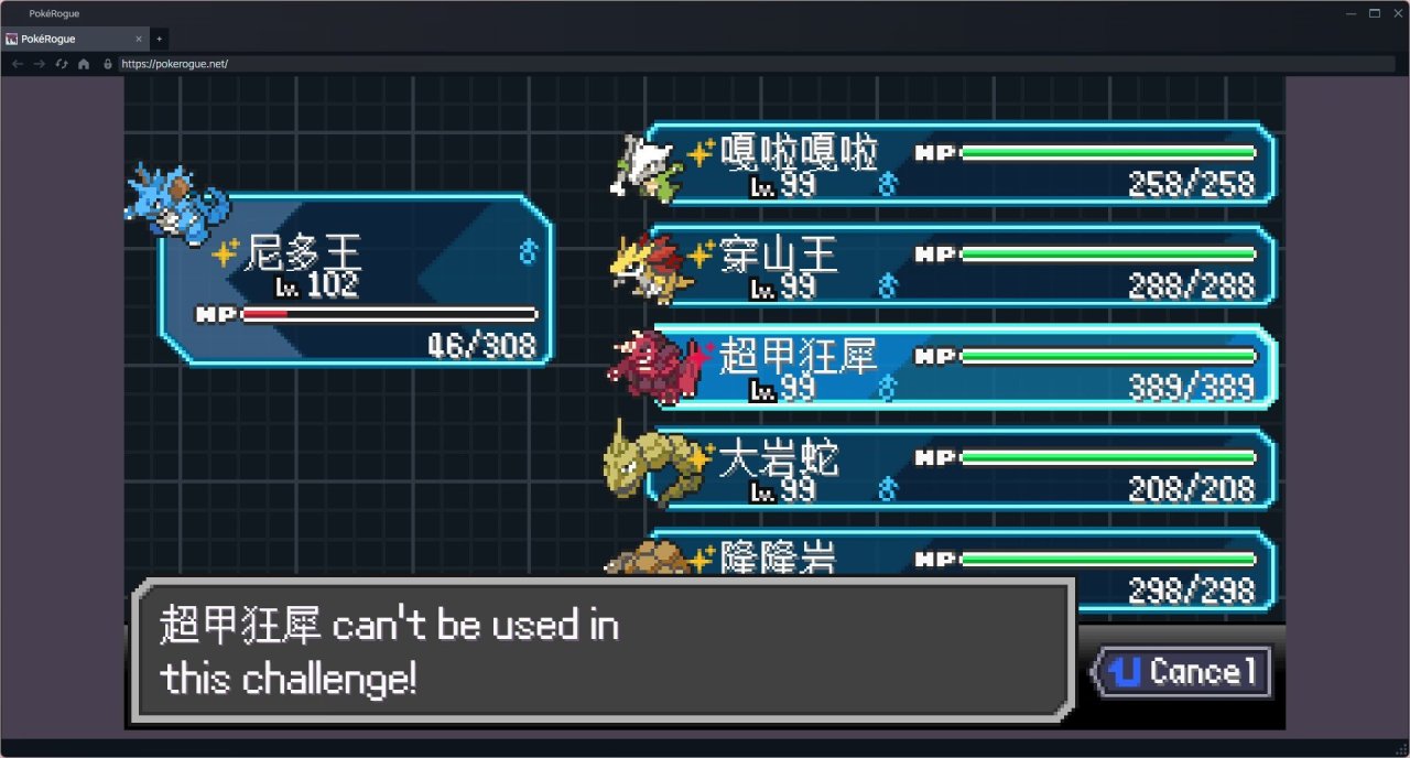 這裏被等離子隊打懵了,我進化了超甲狂犀。結果就是它不屬於第一世代的寶可夢,用不了了