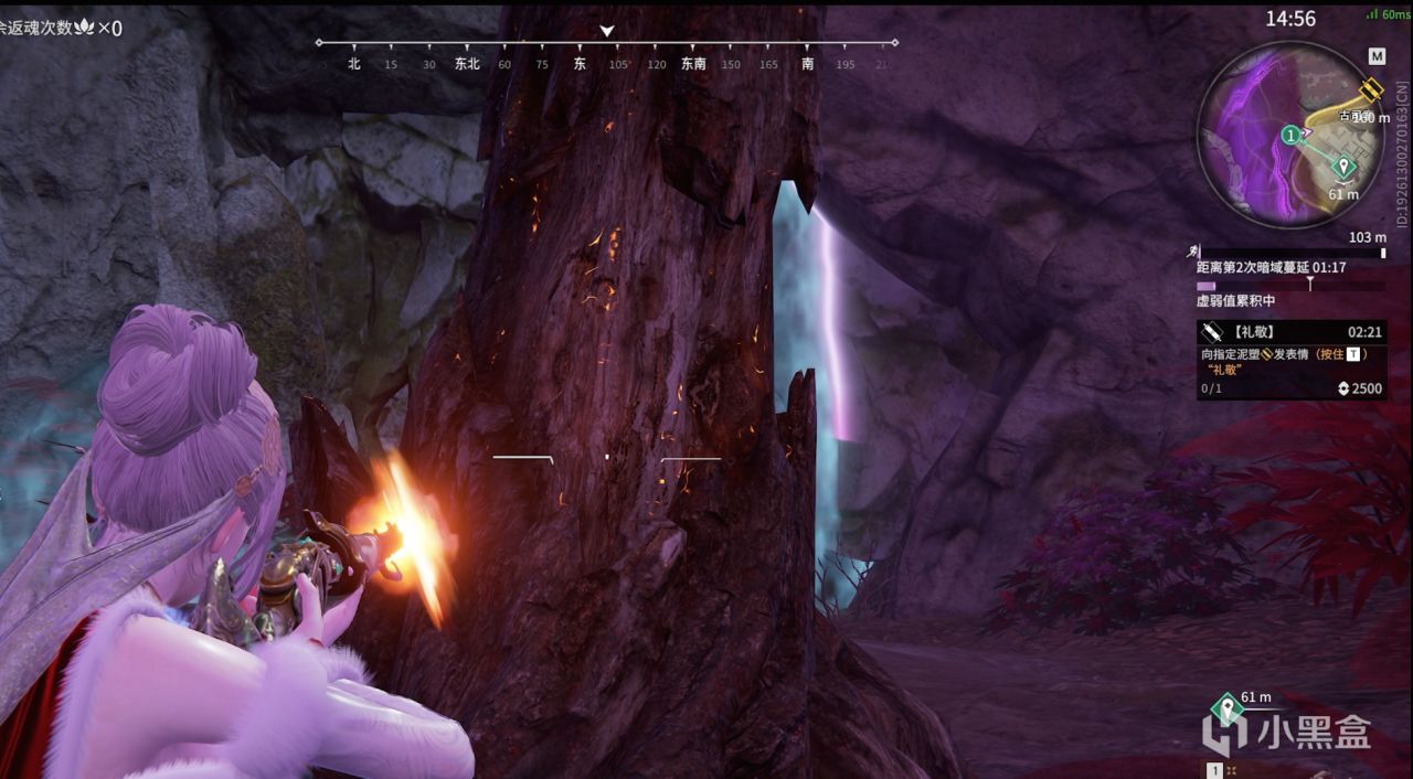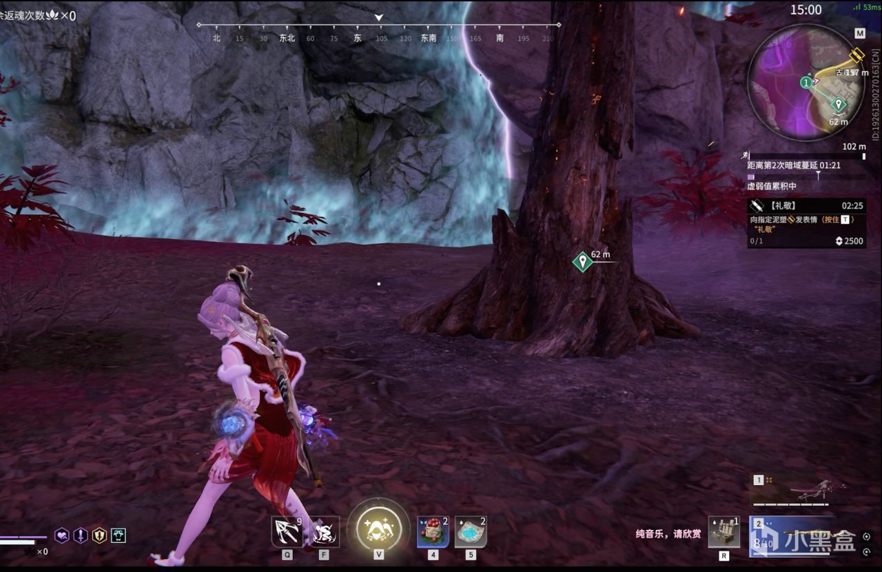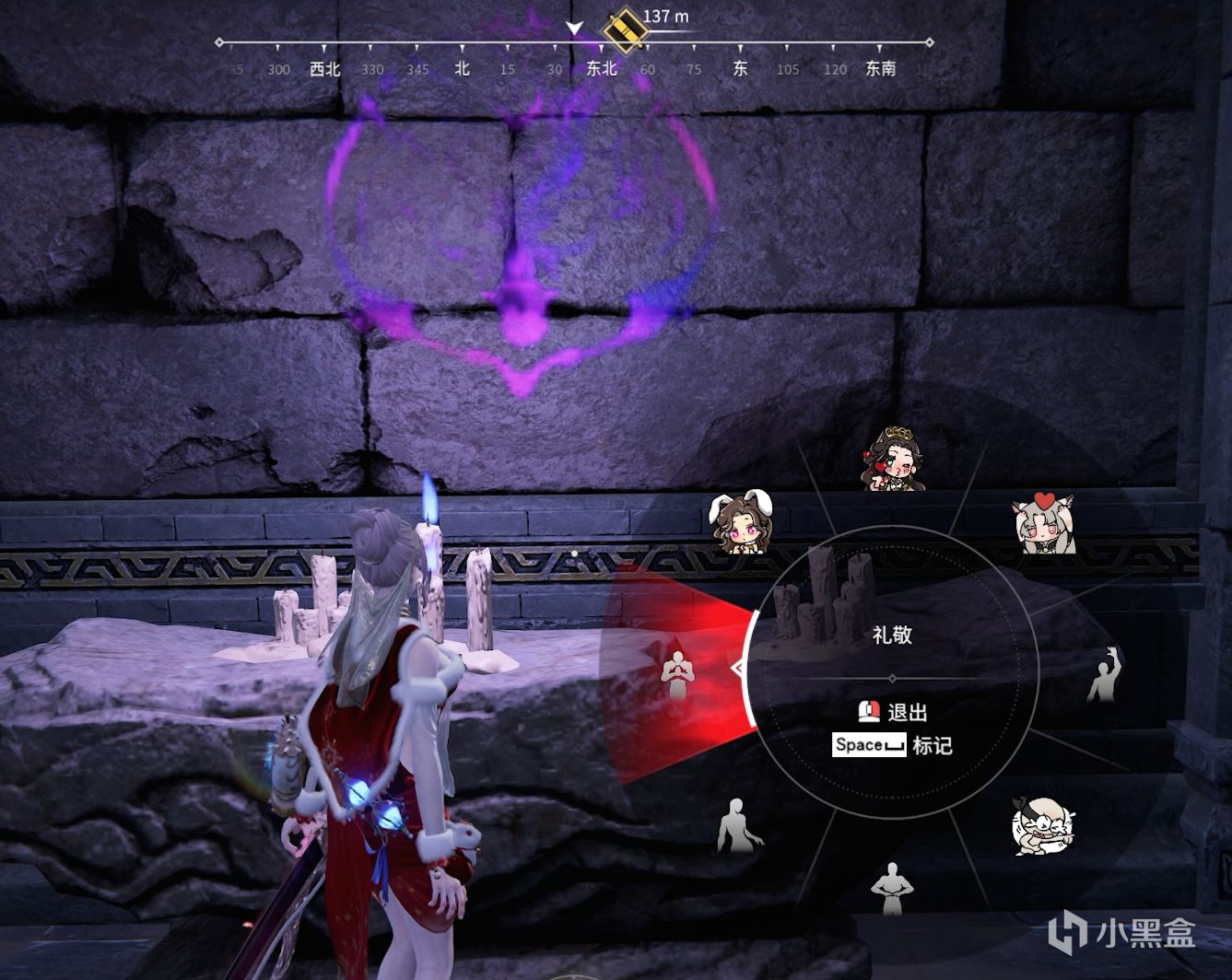 解謎獲取內丹(紅魂玉)後,去到這一片區域,找到洞口,用枯木砸開。在裏面會有一個燭龍印記,對齊使用“禮敬”動作。