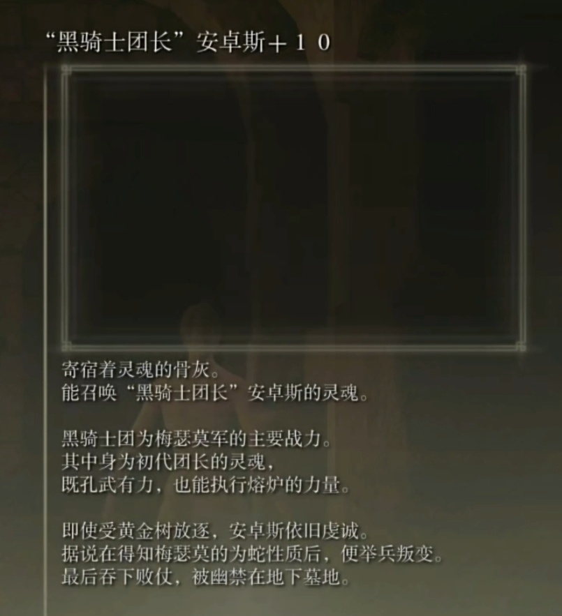 ②黑騎士團長安卓斯,即使被黃金樹放逐了,也非常忠誠。直到他看到了梅瑟莫的本質是蛇,才挑起反叛