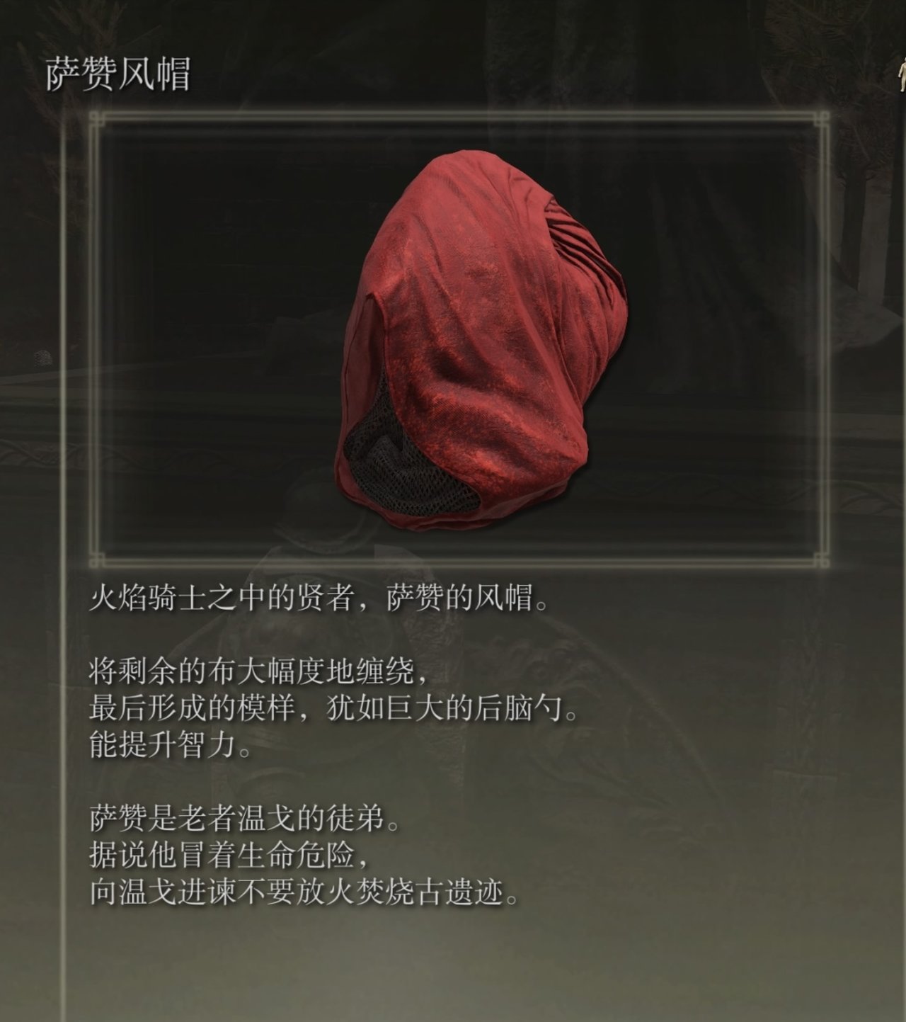 【薩讚的風帽】薩讚的風帽,據說他冒着生命危險,向溫戈進諫不要燒燬古遺蹟
