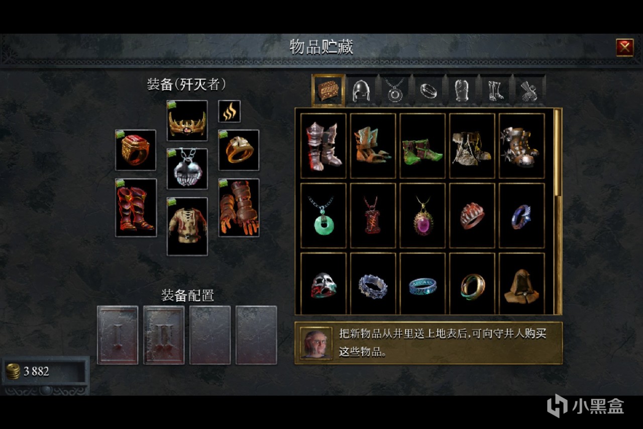 另一方面,局内获取的装备道具只在本轮游戏中生效,如果想要永久解锁,就需要通过局内的水井来将该物品送回地表,并在地表通过NPC守井人花费金币购买,再可以通过仓库系统使用已拥有的装备。