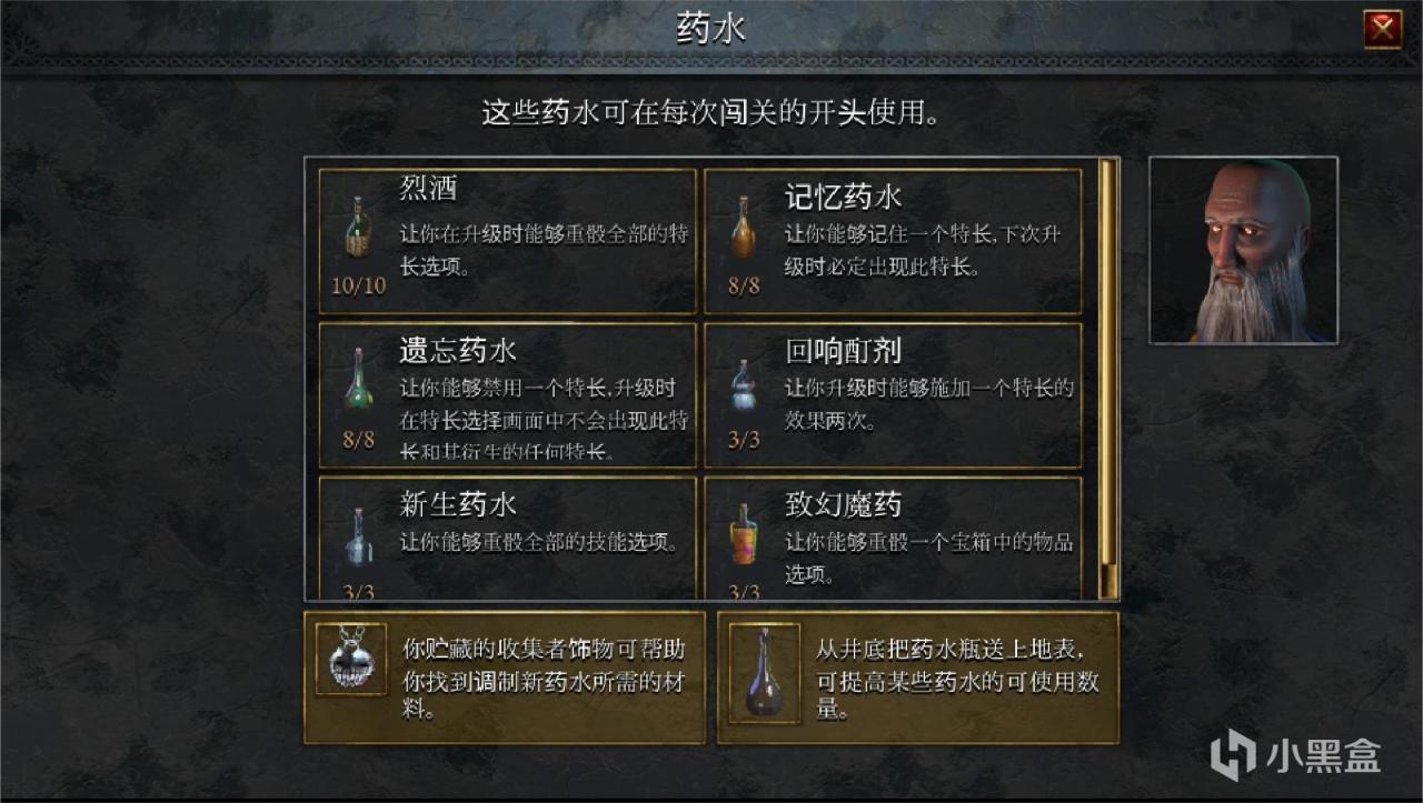 药水部分简单来说,就是通过收集不同地图的素材和药瓶,来解锁特殊药水,在局内使用这些药水能够带来特殊效果。