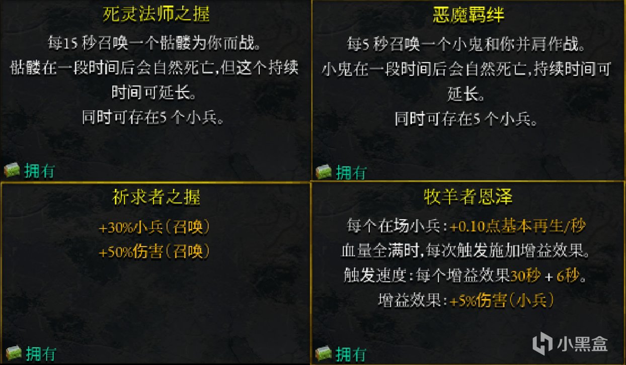 PS:本作中的部分升级项如果有特殊说明,那就只针对特定对象。比如下图技能就只针对“灵魄战士”这个技能加成20%伤害,不对其他对象加成。