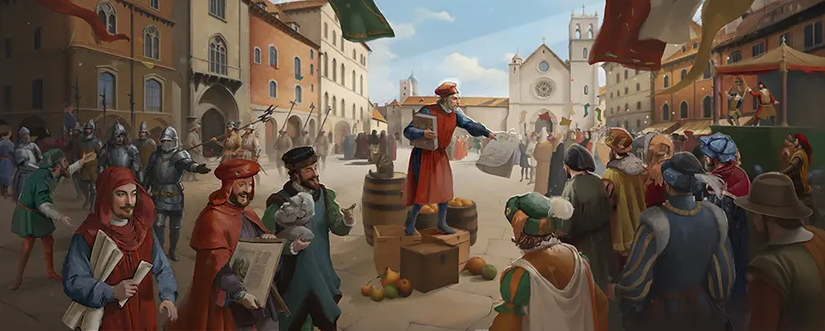 大規模生產書面文字的技術將徹底改變信息的傳播方式,同時在各個層面改變整個早期現代社會。遊戲開局時印刷術已經發展成熟,並在整個歐洲傳播,從各種小冊子到科學論文和行爲準則,數十萬份各式各樣的書籍正在歐洲大陸流通。