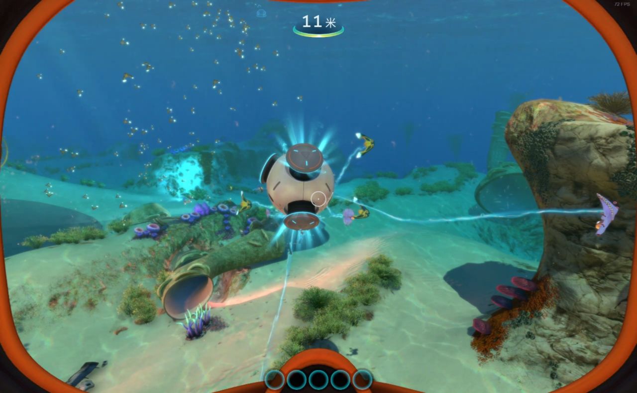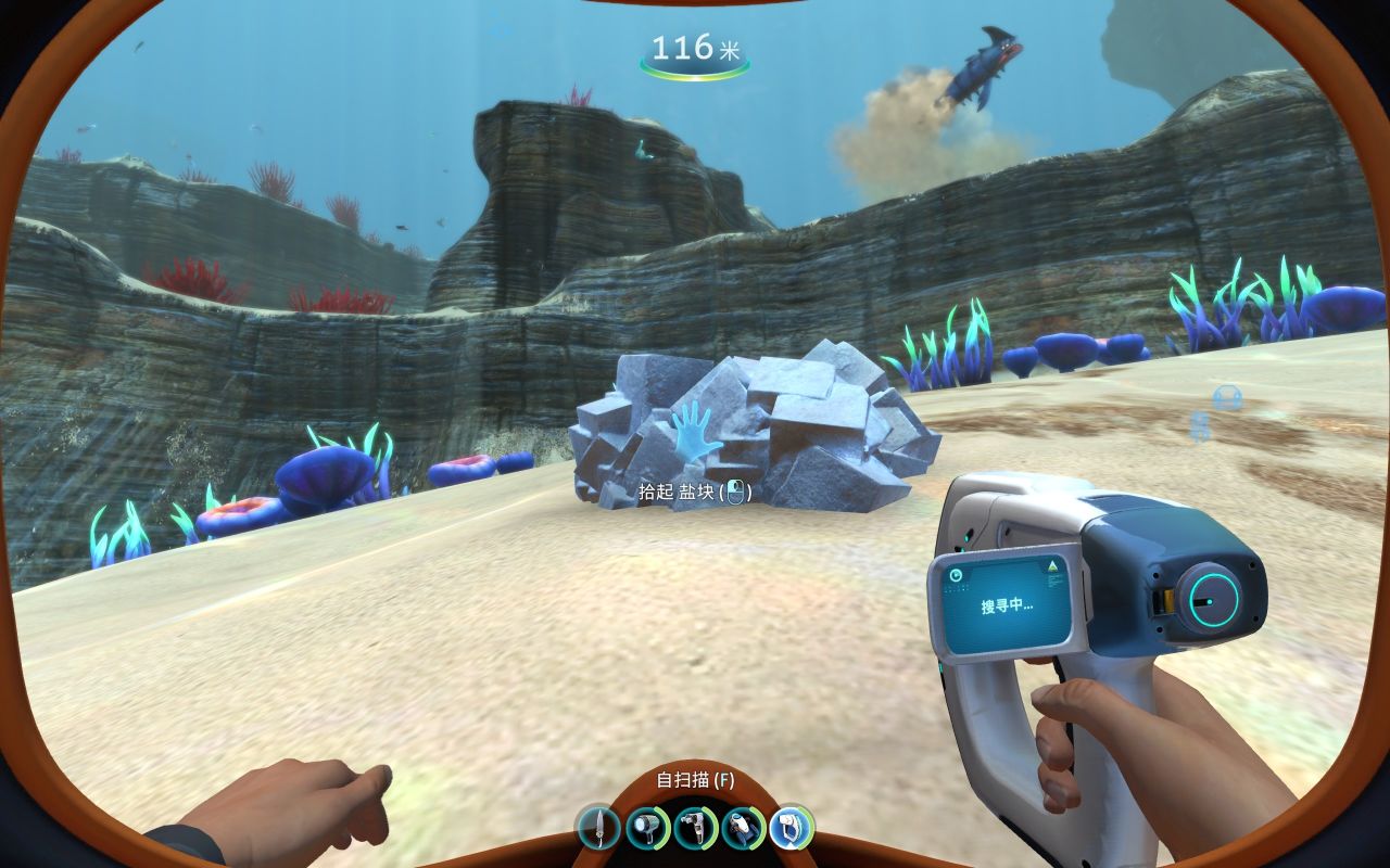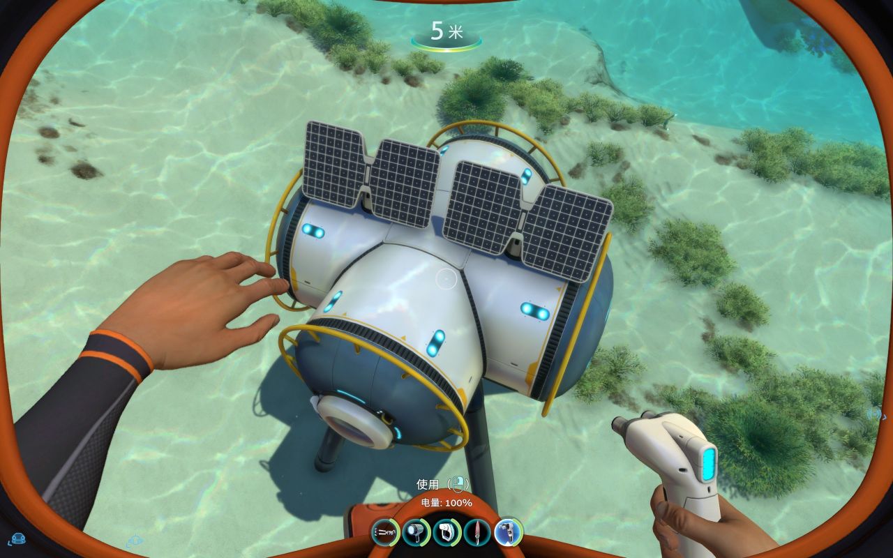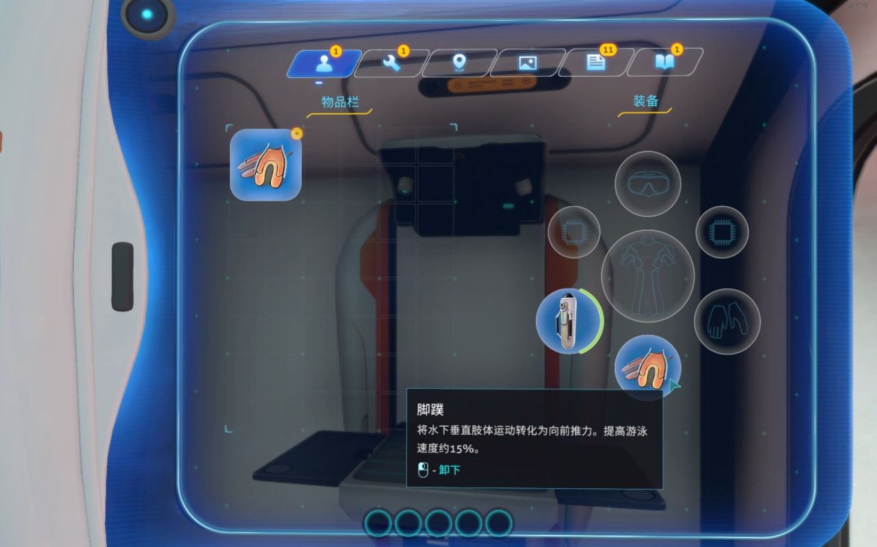 (1个电池+1个润滑剂+1个铜+1个钛)有空多去扫扫废墟堆,找到它的蓝图(绿藻区经常刷新)它有侦测附近地形的能力,也可以为你水下活动加速,同样,鼠标右键可以打开灯光