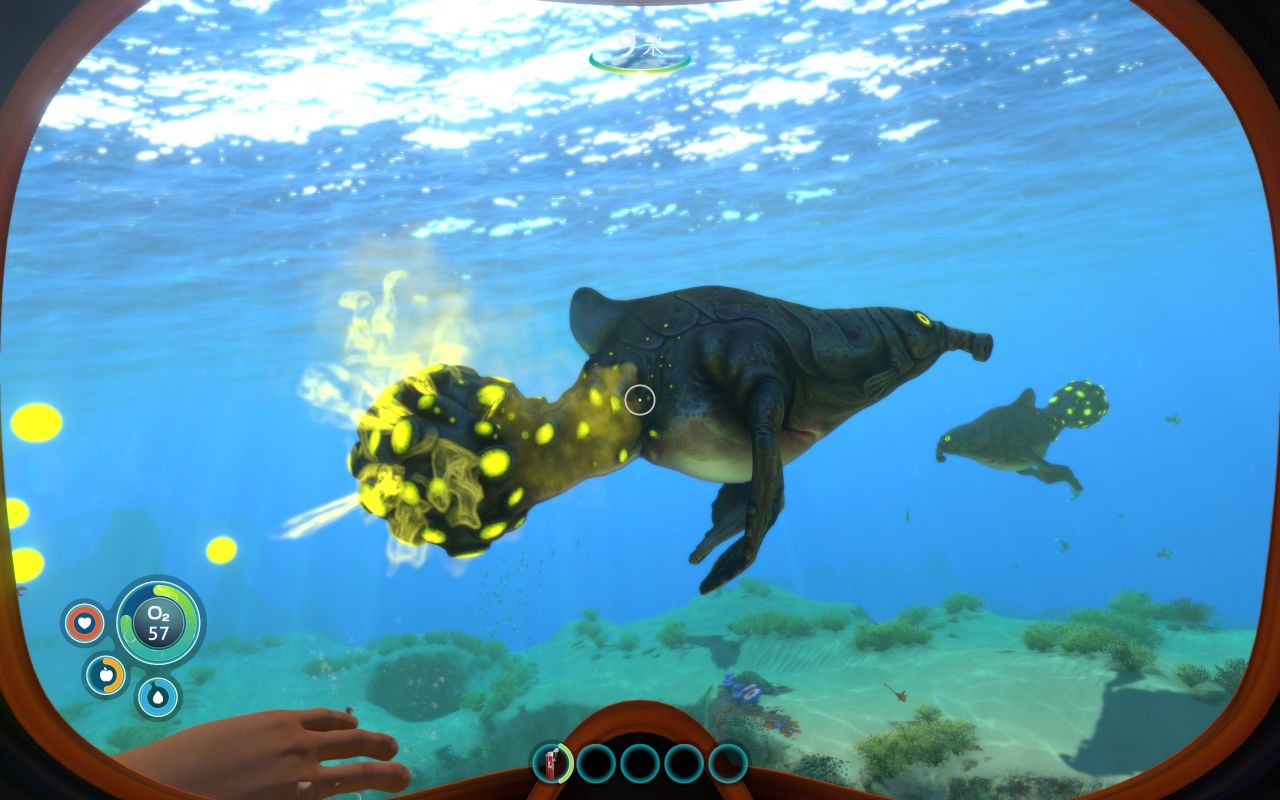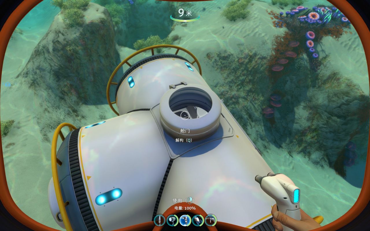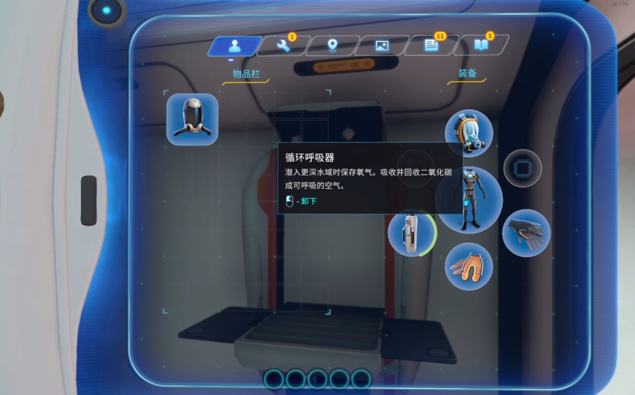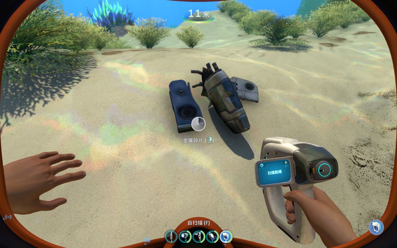 (1个电池+1个润滑剂+1个铜+1个钛)有空多去扫扫废墟堆,找到它的蓝图(绿藻区经常刷新)它有侦测附近地形的能力,也可以为你水下活动加速,同样,鼠标右键可以打开灯光