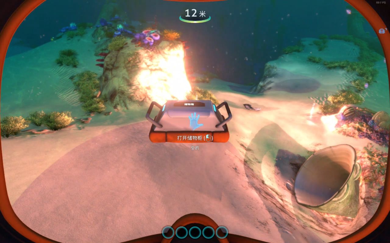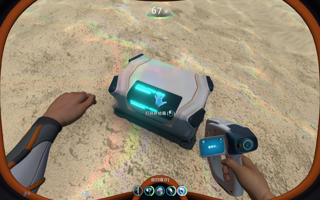 (4个钛)前期没建基地时,可以先拿这个储存你四处搜索的资源,在水中右键放下(对准名称,可以改名)