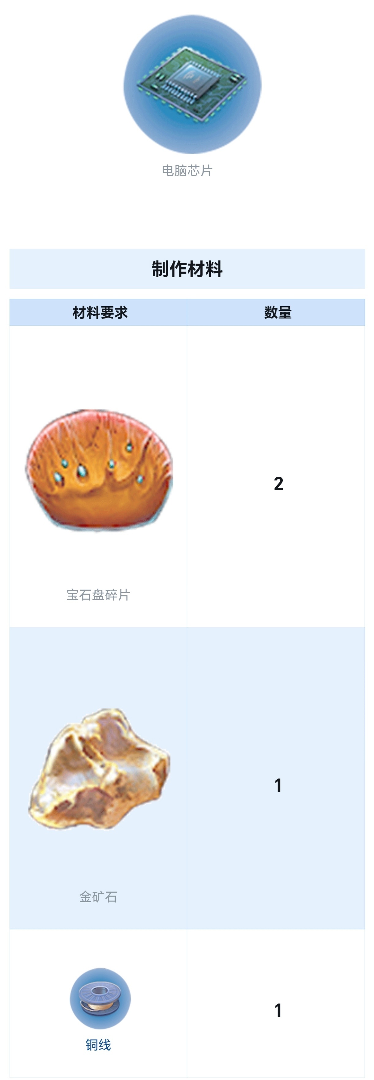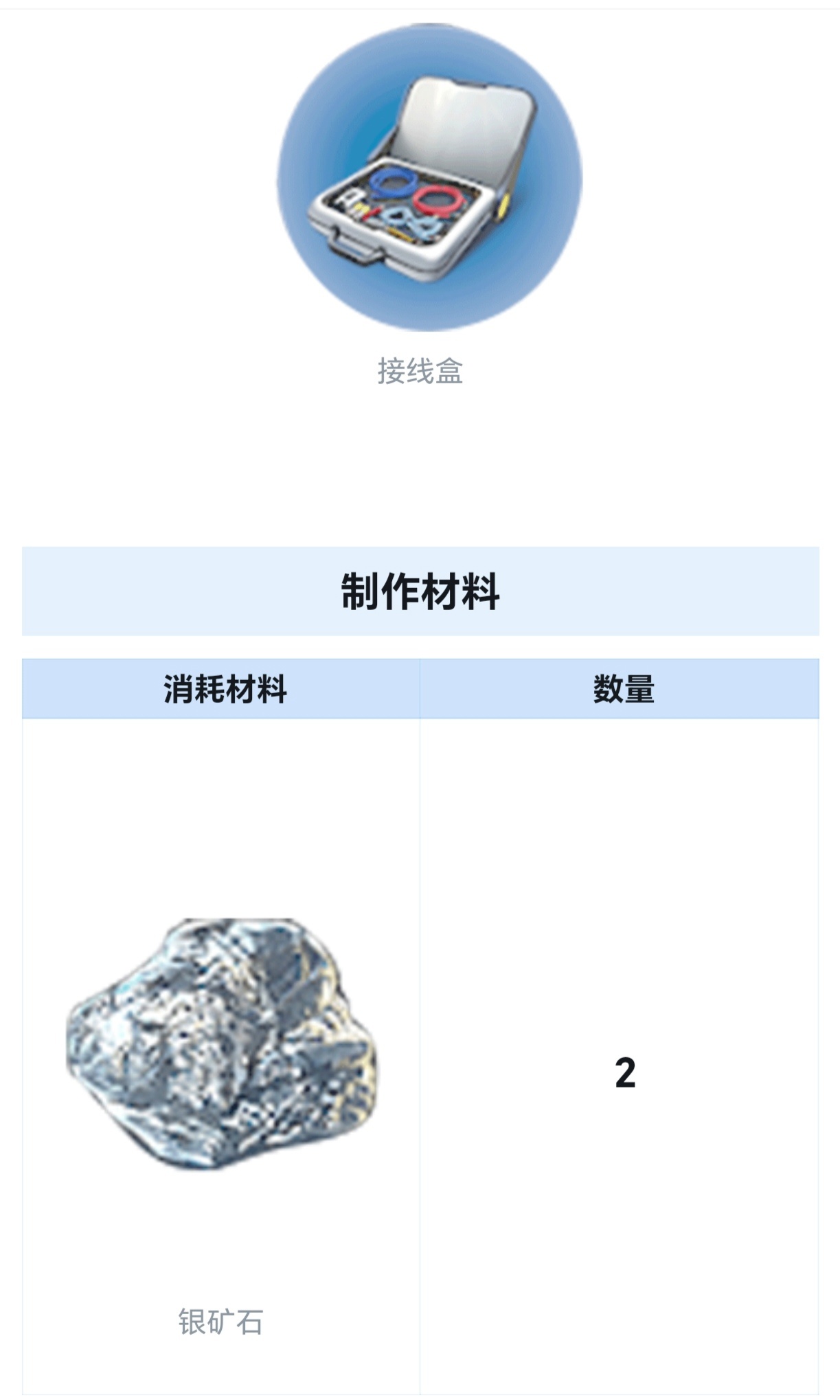 (2个银)前期对于不知道去哪搞金、银、铅的玩家,很不友好,因为按情况发展下去,你需要好多这类矿石(看下面第五点)造出的【接线盒】(2个银)和【电脑芯片】(1个金+1个铜线+2个宝石盘碎片)来作为材料制作其他东西