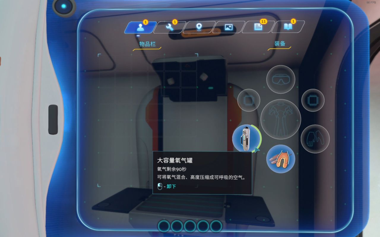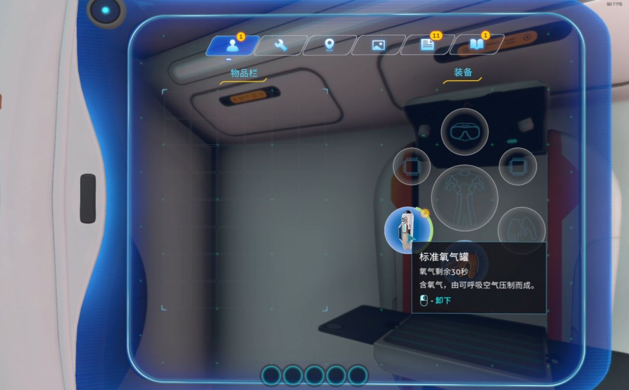 (3个钛)它可以为你额外增加30秒的氧气量(装备后氧气容量为75秒)