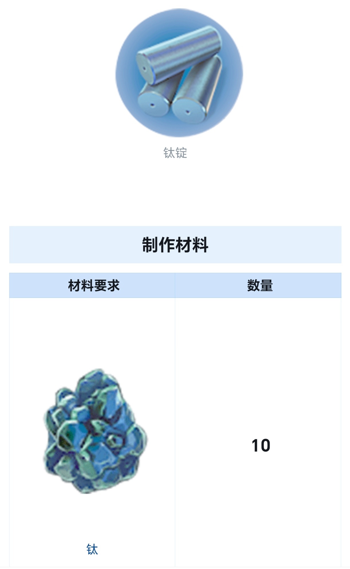 (10个钛)钛的加工版,一些建筑需要用,建造海蛾号也需要