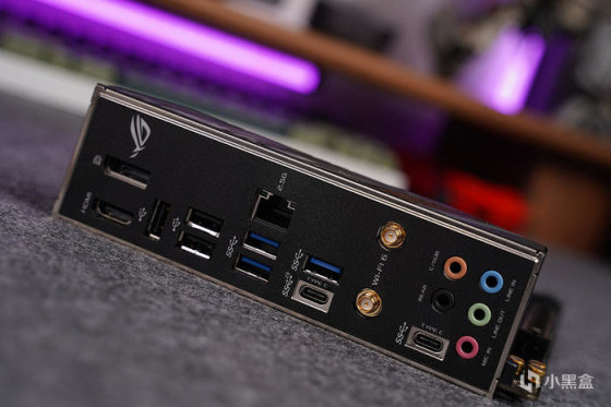 I/O 马甲金属模块,兼顾 MOS 散热,一体式 I/O 挡板,接口从左到右 HDMI 和 DP 视频输出接口、USB 2.0 ×3 接口、2.5GB LAN 接口、USB 3.2 GEN1 ×3 接口、USB 3.2 GEN2 2×2 20GB Type-C 接口、WIFI 6 / 蓝牙 5.2 天线接口、USB 3.2 GEN1 Type-C 接口、音频输出输入接口。
