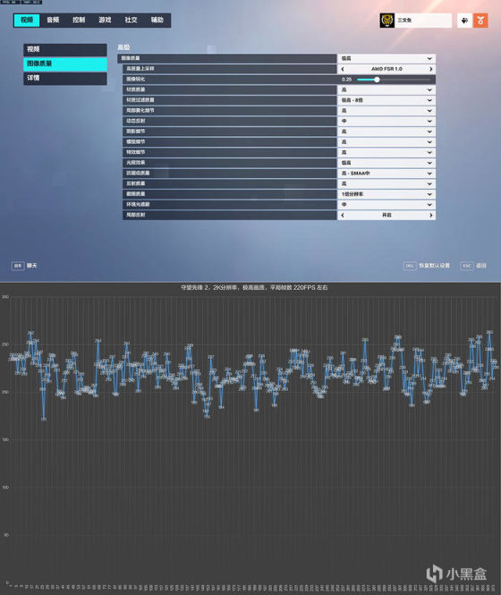 守望先锋 2 ,2K 分辨率,极高画质,对局平均帧数 220FPS 左右。