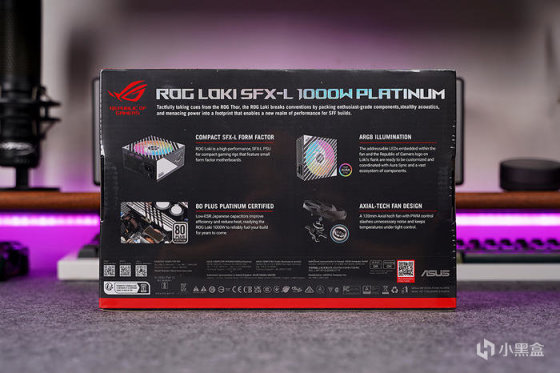 最后压轴介绍下最新推出的华硕 ROG 洛基 LOKI SFX-L 1000W 白全模组 ATX3.0电源,原生支持 40 系 PCIe 5.0 规范的 12VHPWR 接口,包装延续 ROG 系列的设计风格,红黑配色搭配有电源本体展示,烫银型号标注。