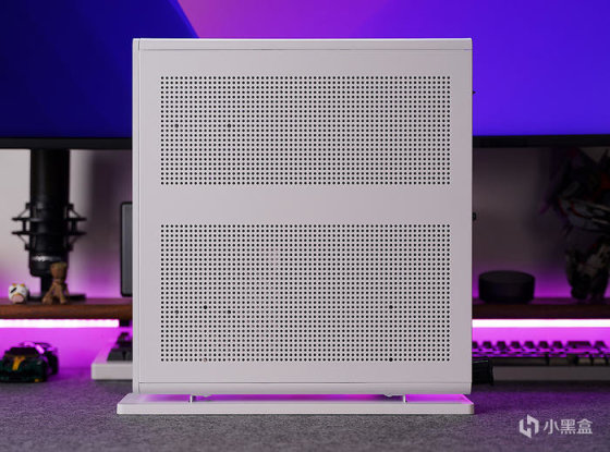 机箱左右侧板,对应内部区域做了大面积的通风散热网孔,采用插锁搭按扣的固定方式。