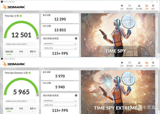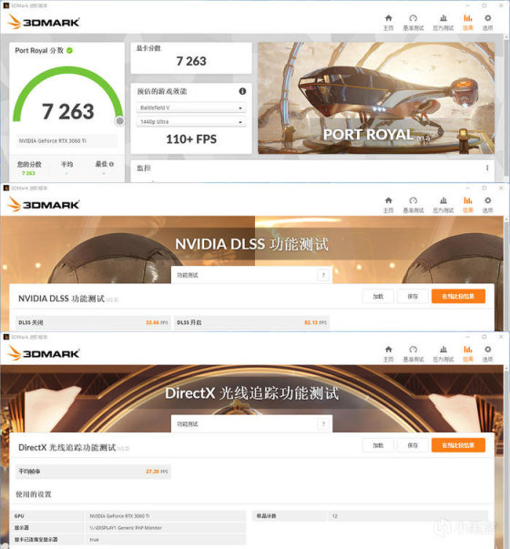 影驰 RTX 3060TI 金属大师 G6X 版本,3DMARK 测试,具体表现如图。