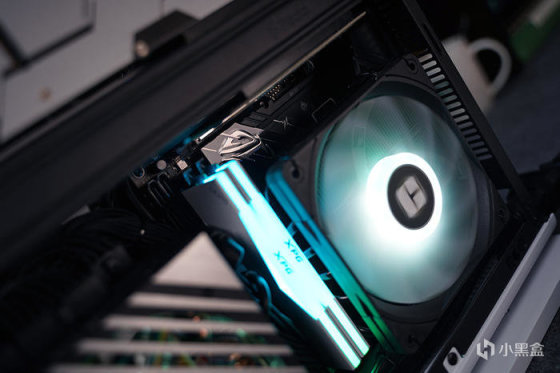 没得 40 系显卡,搭配显卡选用的是影驰 RTX 3060TI 金属大师,因为它足够的长,可以填满机箱的显卡仓位,这样看着舒服,性能也就那样,务实玩家基本是可以满足需求的。