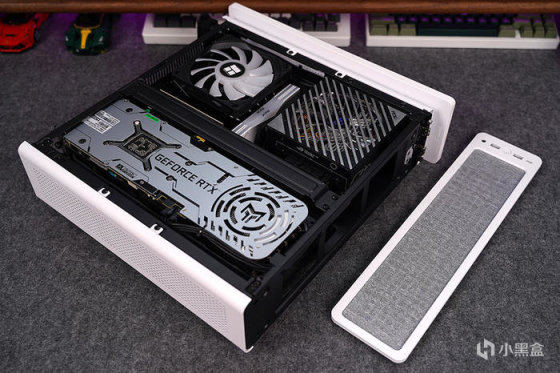 对应菊花两颗防丢的手拧螺丝锁定,上下分仓结构,上层住着显卡,下层则是电源和主板。