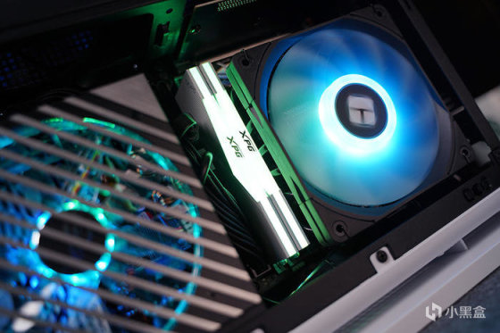 顶部 1:1 大小的导光条,居中 XPG LOGO 点缀,RGB 支持各大主板厂商的灯效控制芯片,同步软件控制灯效模式。