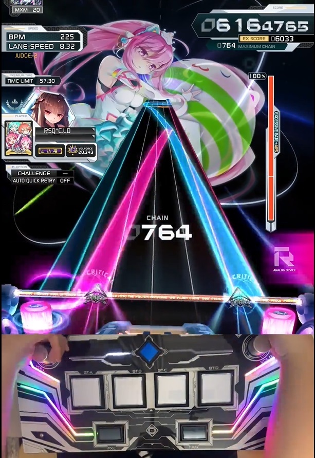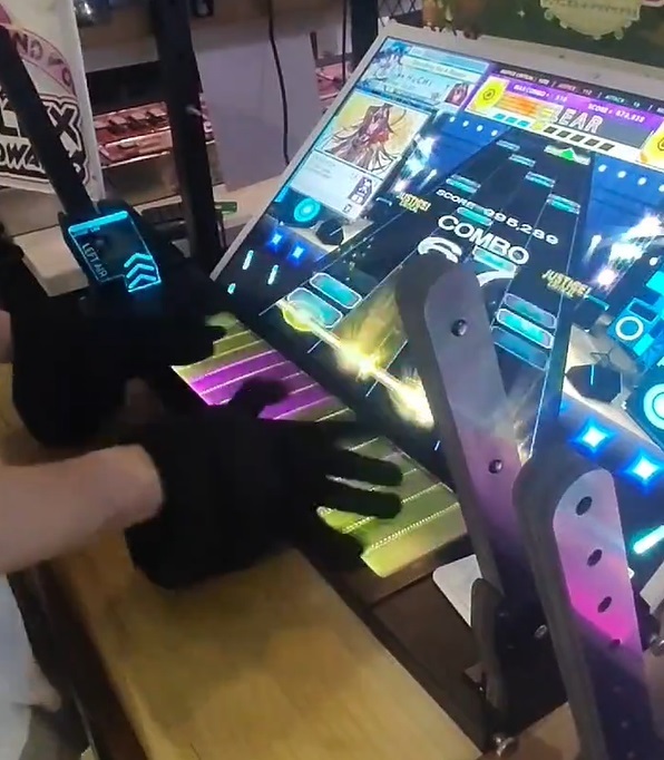 比如IIDX獨特的“7+1K”在鍵盤輸入方式下只是個普通8K下落式,體驗並不佳,因而就需要手臺的輔助。