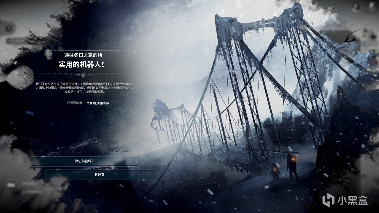 一號偵察隊來到了一座鋼橋前,橋的另一端,一隻巨大的機器人在清掃積雪。