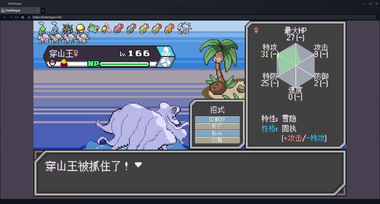 性格不錯,個體值有點抽象。阿羅拉穿山王就25的特攻種族值