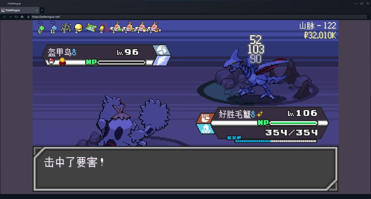 —第55層勁敵— 人家都最終進化啦!穿山鼠用尖刺防守和鐵頭艱難擊殺,主要水箭龜空了水流尾,還被我畏縮了一次。