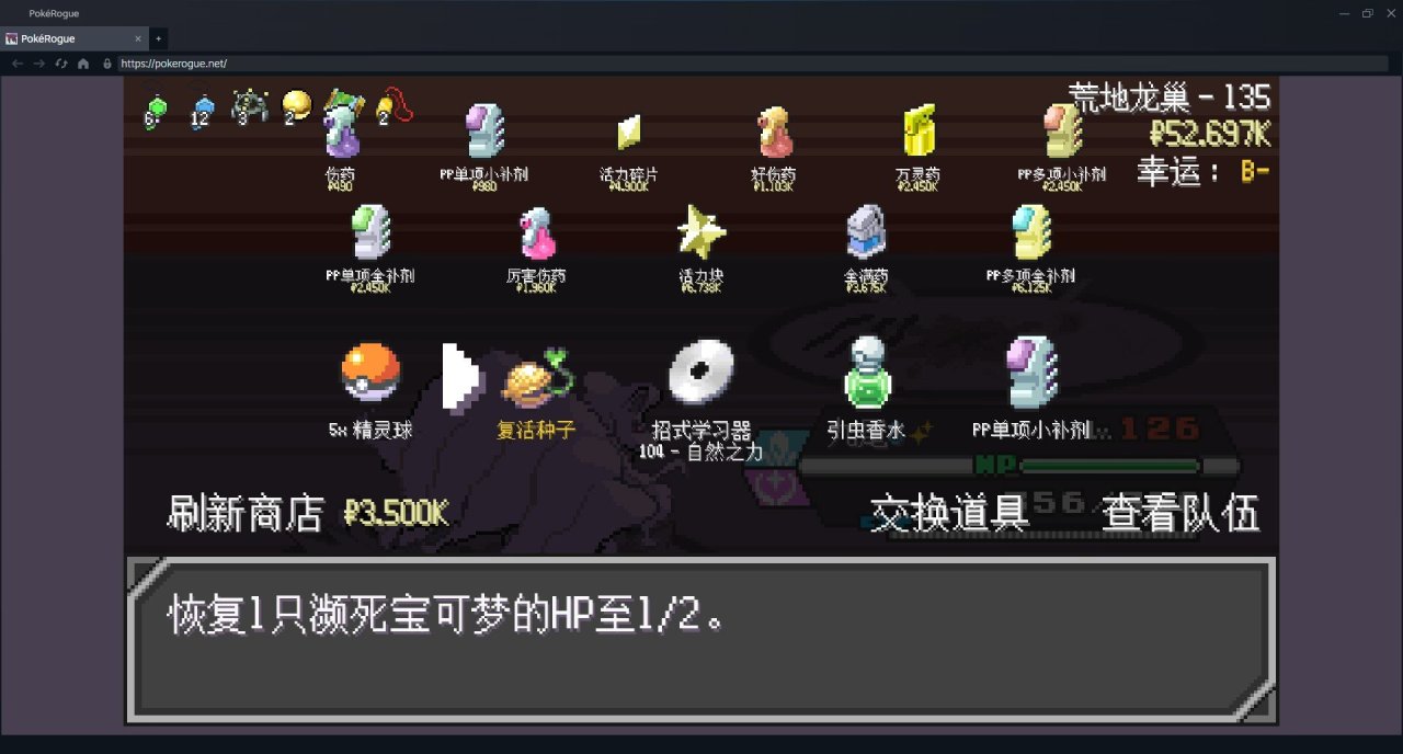 —140層道館主— 還真有,結實特性呂鋼橋龍。用噴射拳能先制但是秒不掉,用水流連打直接出不了手,被鐵尾打死。九尾也沒法秒,然後被鐵尾秒,這顆復活種子保不了。除非戰前把復活種子放到屬性空身上