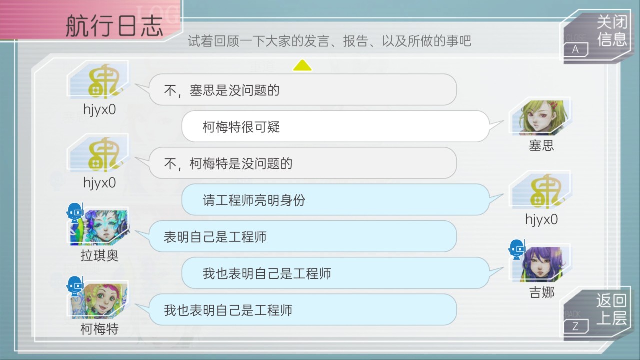 以狼人殺類型遊戲玩法在激辯和投票中爭取生存機會。感謝大家乘坐本航次宇宙飛船,祝各位旅途愉快!